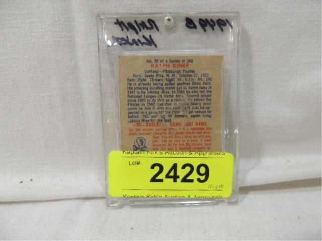 REPRINT 1949 BOWMAN #29 BASEBALL CARD RALPH KINER. AS SHOWN. VIEW PICTURE FOR DETAIL.