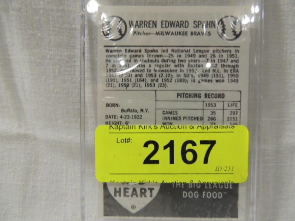 REPRINT 1953 RED HEART BASEBALL CARD WARREN SPAHN. AS SHOWN. VIEW PICTURE FOR DETAIL.