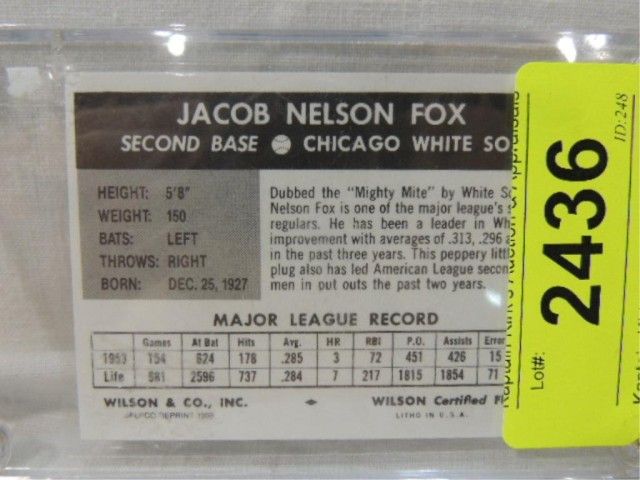 REPRINT 1953 WILSON WEINERS BASEBALL CARD NELSON FOX. AS SHOWN. VIEW PICTURE FOR DETAIL.