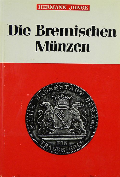 Jungk, Hermann. DIE BREMISCHEN MÜNZEN. MÜNZEN UND MEDAILLEN DES ERZBISTHUMS UND DER STADT BREMEN MIT GESCHICHTLICHER EINLEITUNG. Braunschweig, 1967 Klinkhardt & Biermann reprint of the original 1875 edition. 8vo, original red cloth, gilt; jacket. xiv, (2), 408 pages; 39 plates. Near fine. The classic, still indispensable work.