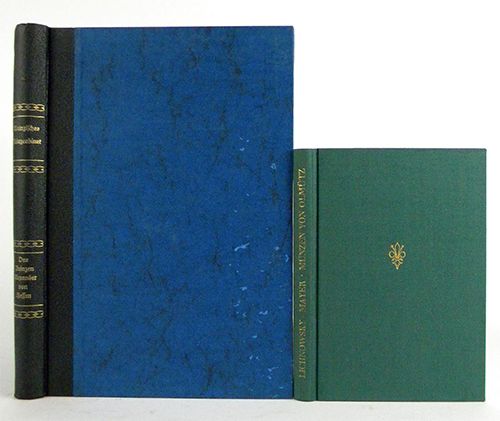 Alexander von Hessen. MAINZISCHES MÜNZCABINET DES PRINZEN ALEXANDER VON HESSEN. Münster-Angelmodde, 1968 reprint. 4to, original black cloth-backed boards, gilt. vii, 283, (1) pages. Fine. [with] Lichnowsky, R. v., and E. v. Mayer. DES FÜRSTLICHEN HOCHSTIFTES OLMÜTZ MÜNZEN UND MEDAILLEN. Graz, 1963 reprint. 12mo, original green cloth, gilt. (8), 179, (5) pages. Fine. First work Clain-Stefanelli 9426*.