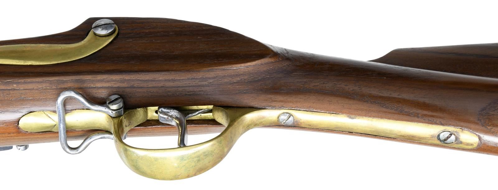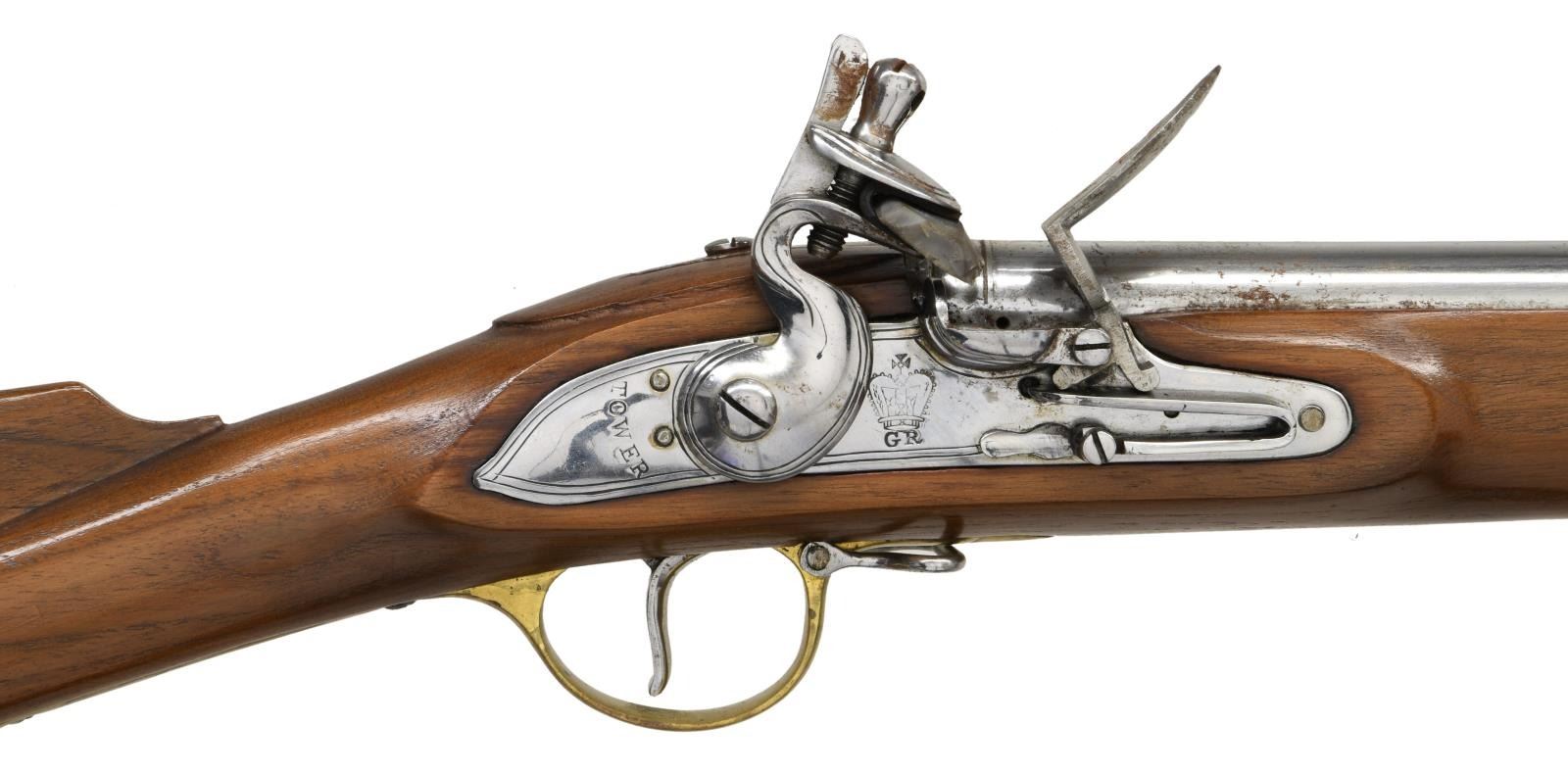 Cal. 70. NSN. Bbl. 39". Blade front sight. Top of bbl. & tang have British style proofs. Lock has "Crown/GR" & "TOWER" markings. No other visible markings. Hardwood stock w/ bottom mounted sling swivels. Ramrod present. CONDITION: stock shows scattered handling wear. Bright metal shows some scattered oxidation & handling wear. Good bore. (01-23731/MJC). ANTIQUE. $300-500.