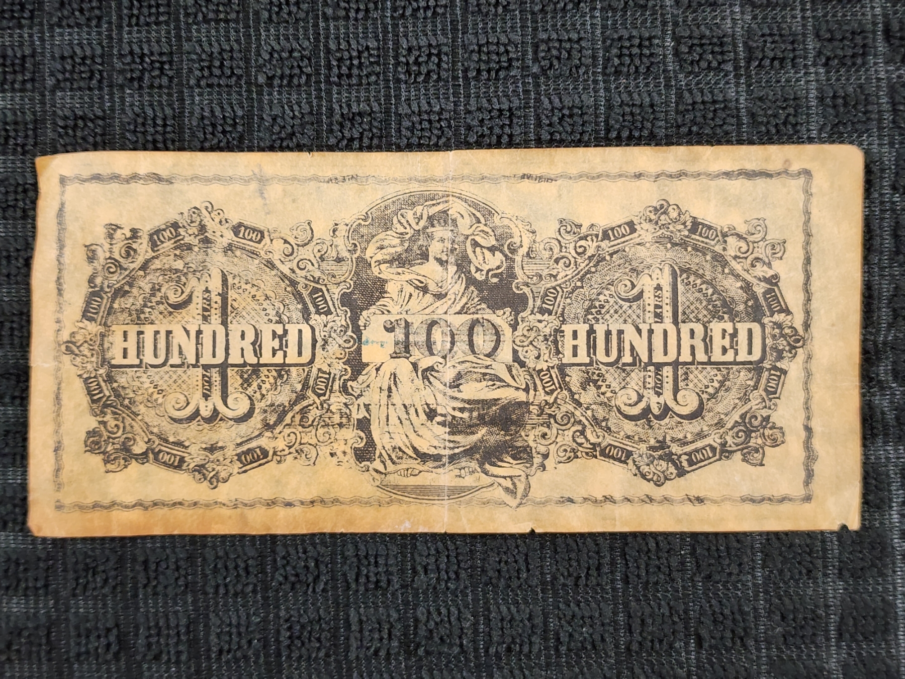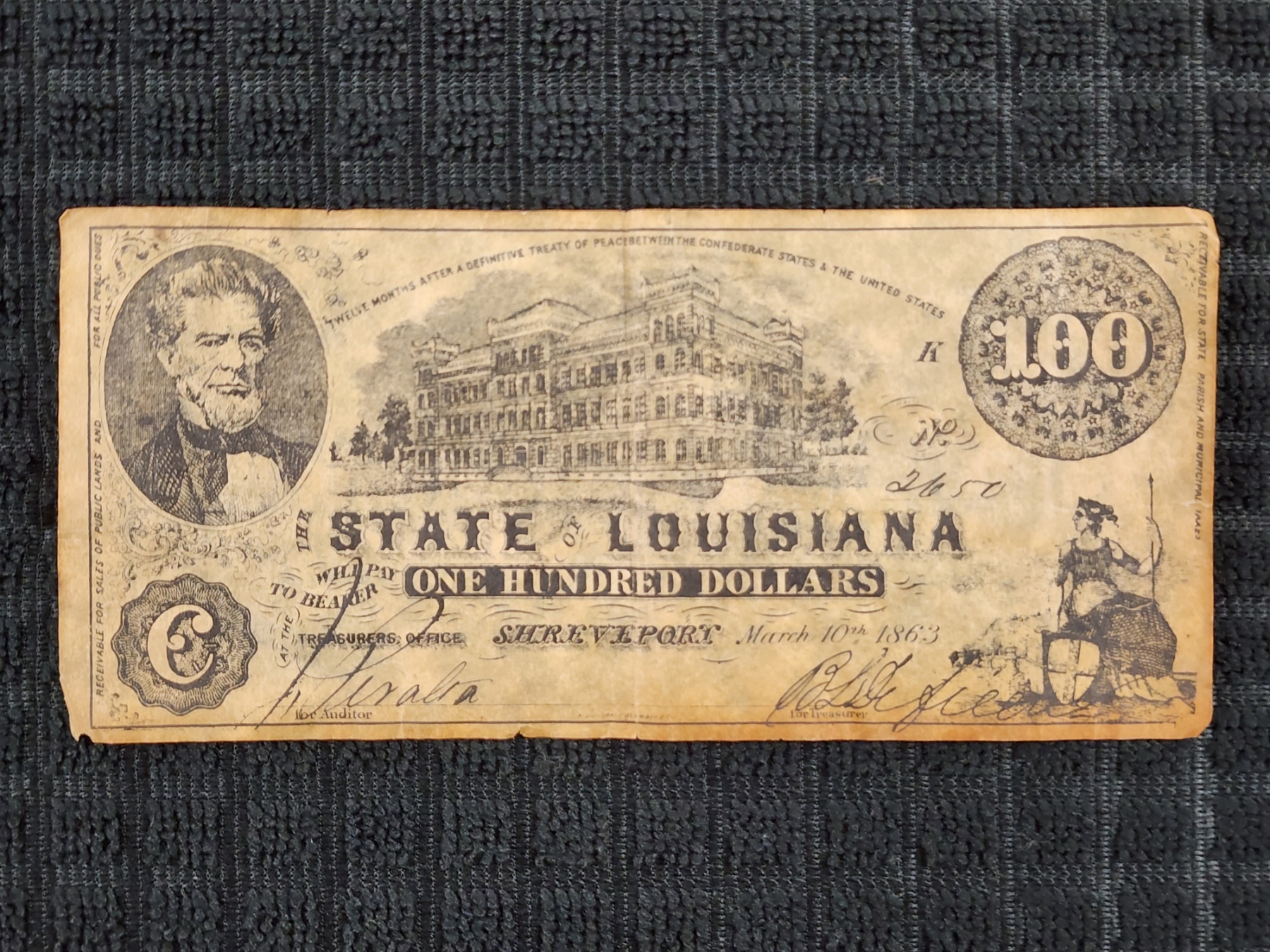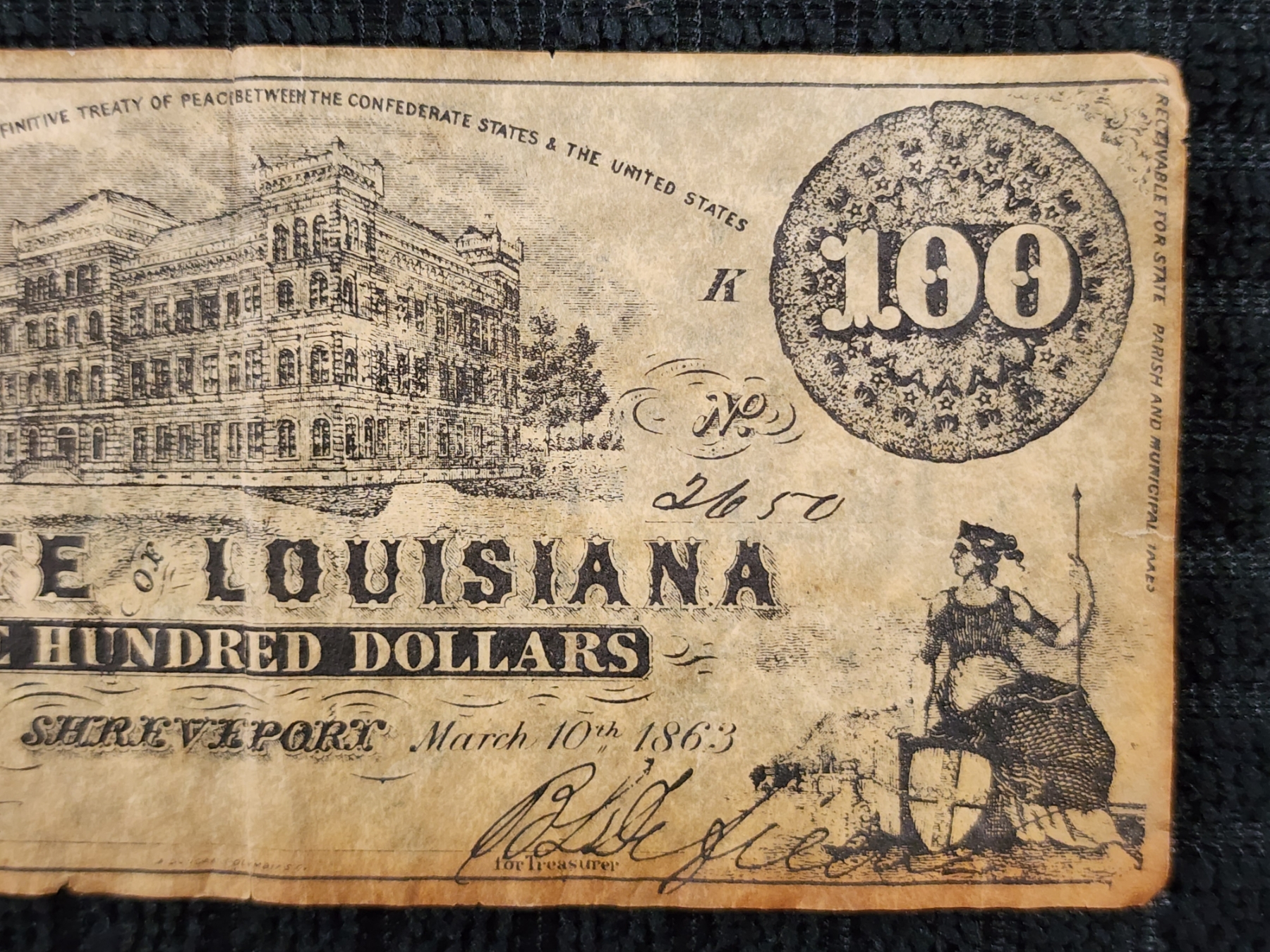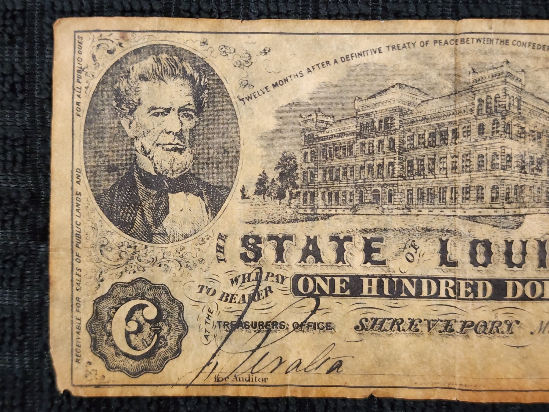 *REPRODUCTION* 1863 State of Louisiana One Hundred Dollar Note