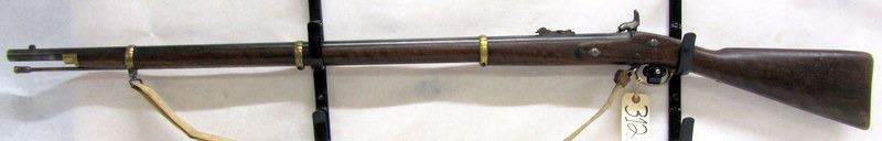 NON-RESTRICTED, PERCUSSION CAP MUZZLELOADER, .58 CALIBER, 38" BARREL, SN 3411. STOCK HAS NUMEROUS WEAR MARKS AND SOME DENTS. BLUEING IS PATCHY AND TURNING GREY. BORE IS DIRTY BUT APPEARS TO BE IN GOOD CONDITION.