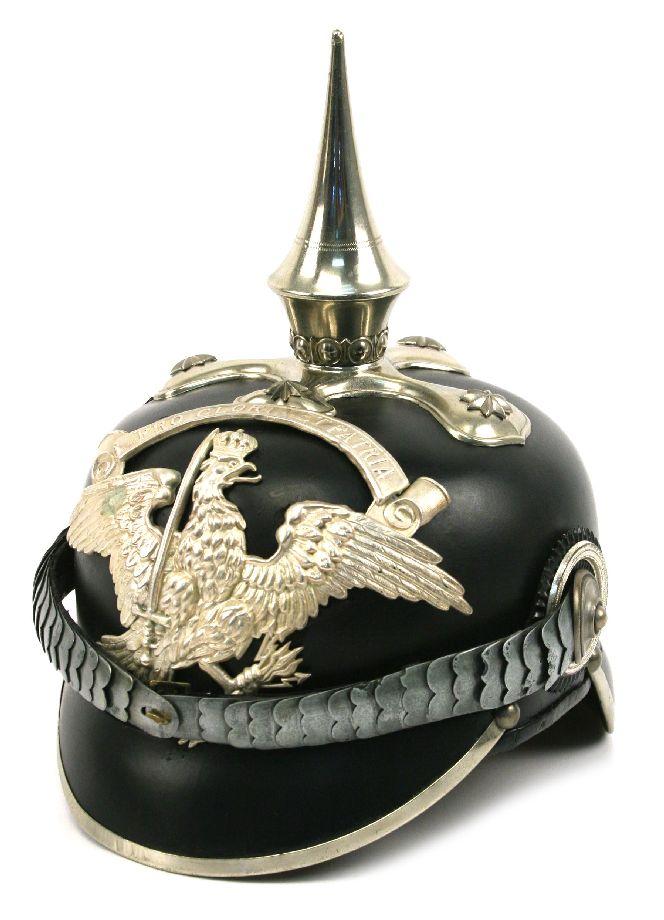 Reproduction Imperial German pickelhaube helmet. "Pro Gloria Et Patria" (for Glory and Fatherland) on front above eagle. Very good condition.