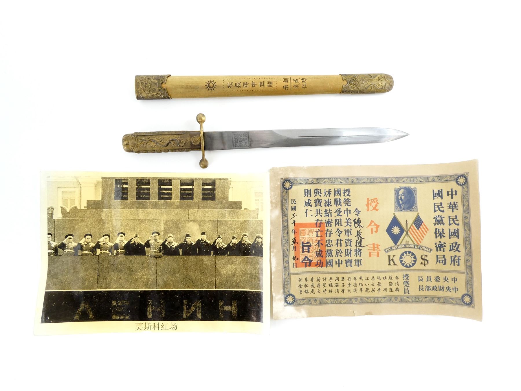 REPRODUCTION NATIONALIST CHINESE MILITARY DAGGER AND DOCUMENTS LOT