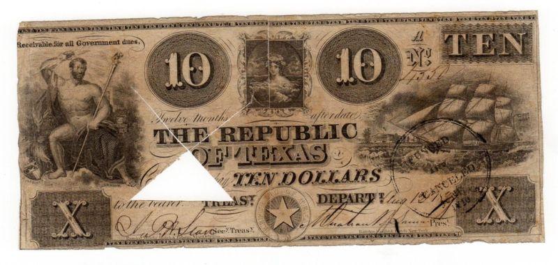 REPUBLIC OF TEXAS JANUARY 20, 1840 TEN DOLLAR NOTE