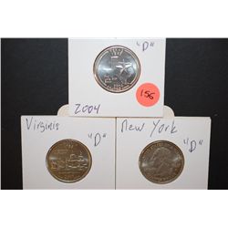 2000-D US Virginia State Quarter, 2001-D US New York State Quarter & 2004-D US Texas State Quarter; 156 - 2000-D US Virginia State Quarter, 2001-D US New York State Quarter & 2004-D US Texas State Quarter;