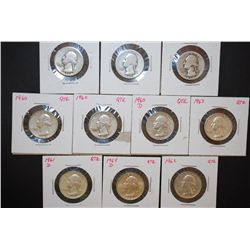 US Silver Quarters; Various Dates & Mint Marks In 2x2 Squares; Lot of 10; EST. $75-100