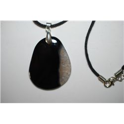 Black Leather Necklace With Multi Colored Stone Charm; EST. $10-20