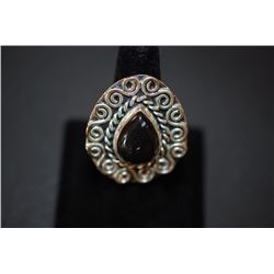Sterling Silver Ring Size 7.5 With Black Marbled Stone & Swirly Pattern; .925 Silver; EST. $15-25