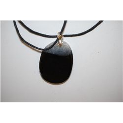 Black Leather Necklace With Multi Colored Stone Charm; EST. $10-20