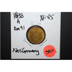 1938-A German 5 Reichspfennig Foreign Coin With Flying Eagle Holding Swatstika; XF45; EST. $10-15382 - 1938-A German 5 Reichspfennig Foreign Coin With Flying Eagle Holding Swatstika; XF45; EST. $10-15