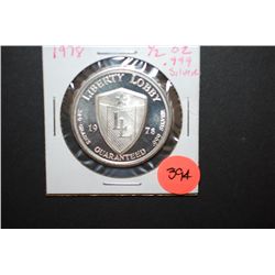1978 Liberty Lobby "Andrew Jackson" Silver Round; .999 Fine Silver 1/2 Oz.; EST. $20-30394 - 1978 Liberty Lobby "Andrew Jackson" Silver Round; .999 Fine Silver 1/2 Oz.; EST. $20-30
