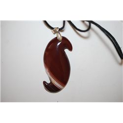 Black Leather Necklace With Multi Colored S-Shaped Stone Charm; EST. $10-20
