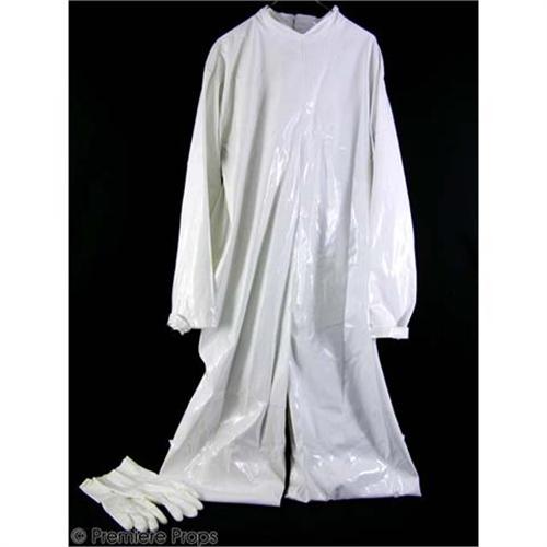 RESIDENT EVIL EXTINCTION - Keep the T-Virus at bay with Dr. Isaacs' (Iain Glen) white hazmat suit and gloves. The screenworn suit is constructed of a vinyl-like material and zips open in the back. Inside reads "Dr. Isaacs". Don't miss this opportunity to own an amazing costume from the set of RESIDENT EVIL EXTINCTION. (REE1077)