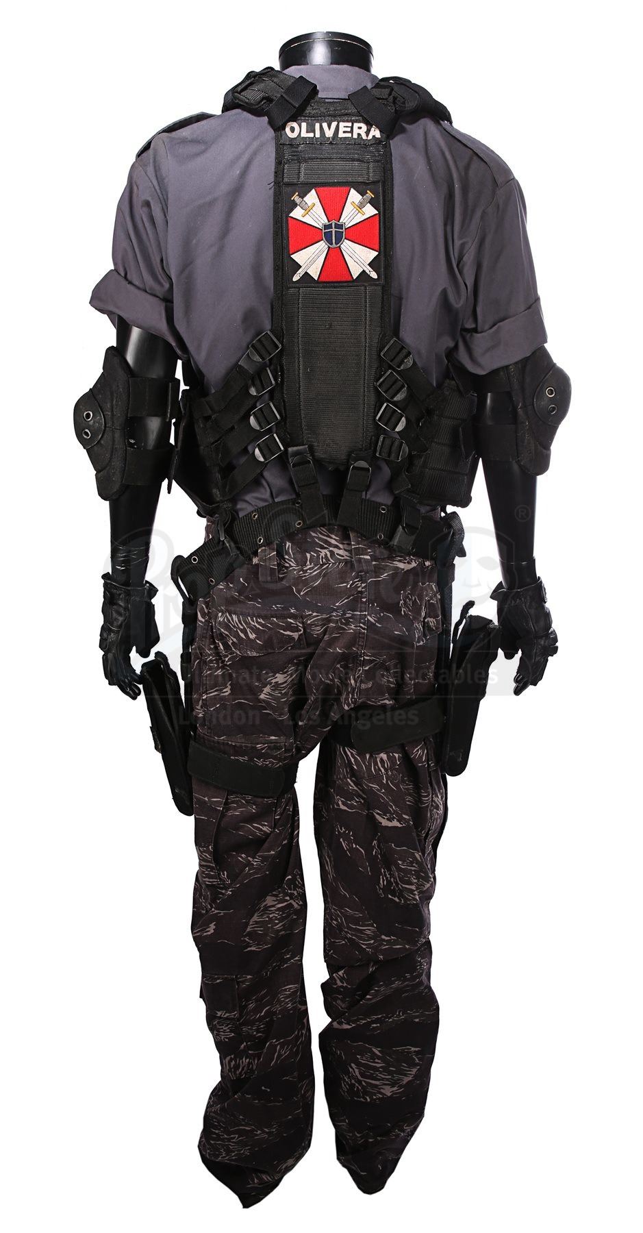 Carlos Olivera’s (Oded Fehr) Umbrella trooper costume from Alexander Witt’s action-horror sequel Resident Evil: Apocalypse. Carlos wore his costume throughout the film as he led his U.B.C.S. team against the zombies and attempted to escape Raccoon City.