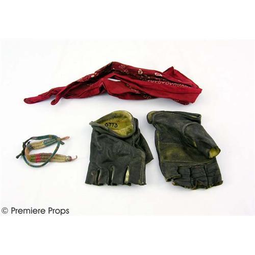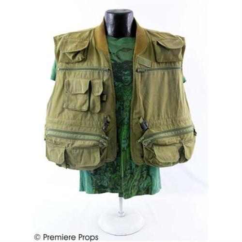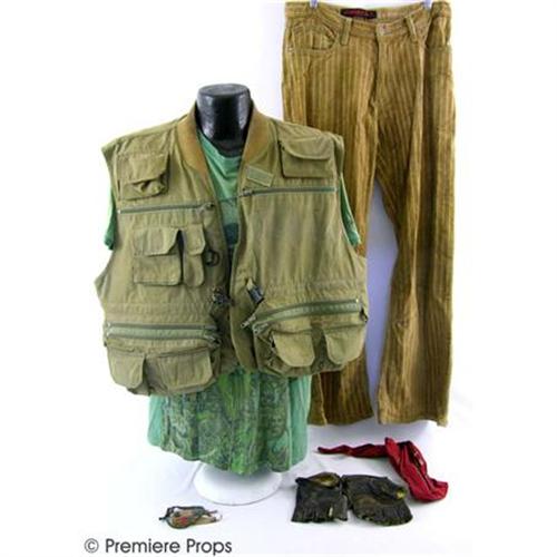 RESIDENT EVIL: EXTINCTION - This is Otto's (Joe Hursley) screenworn costume. The ensemble feautures an olive green "Pacific Fly" multi-pouch fisherman vest, a green "Authentic Hendrix" Jimmy Hendrix graphic short sleeve t-shirt, tan "Johnny Max" corduroy pants (Inside tag reads "Otto"), brown faux-leather fingerless gloves (Inside reads "Otto"). Also included are 2 "American Eagle Outfitters" bracelets/wrist bands and a red paisley bandana. All items are aged and distreesed. Don't miss your opportunity to own a remarkable costume from the set of RESIDENT EVIL EXTINCTION.(REE1135)