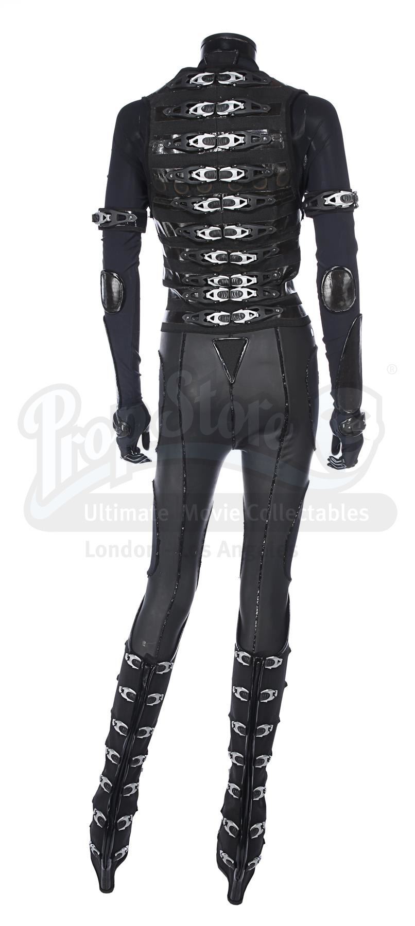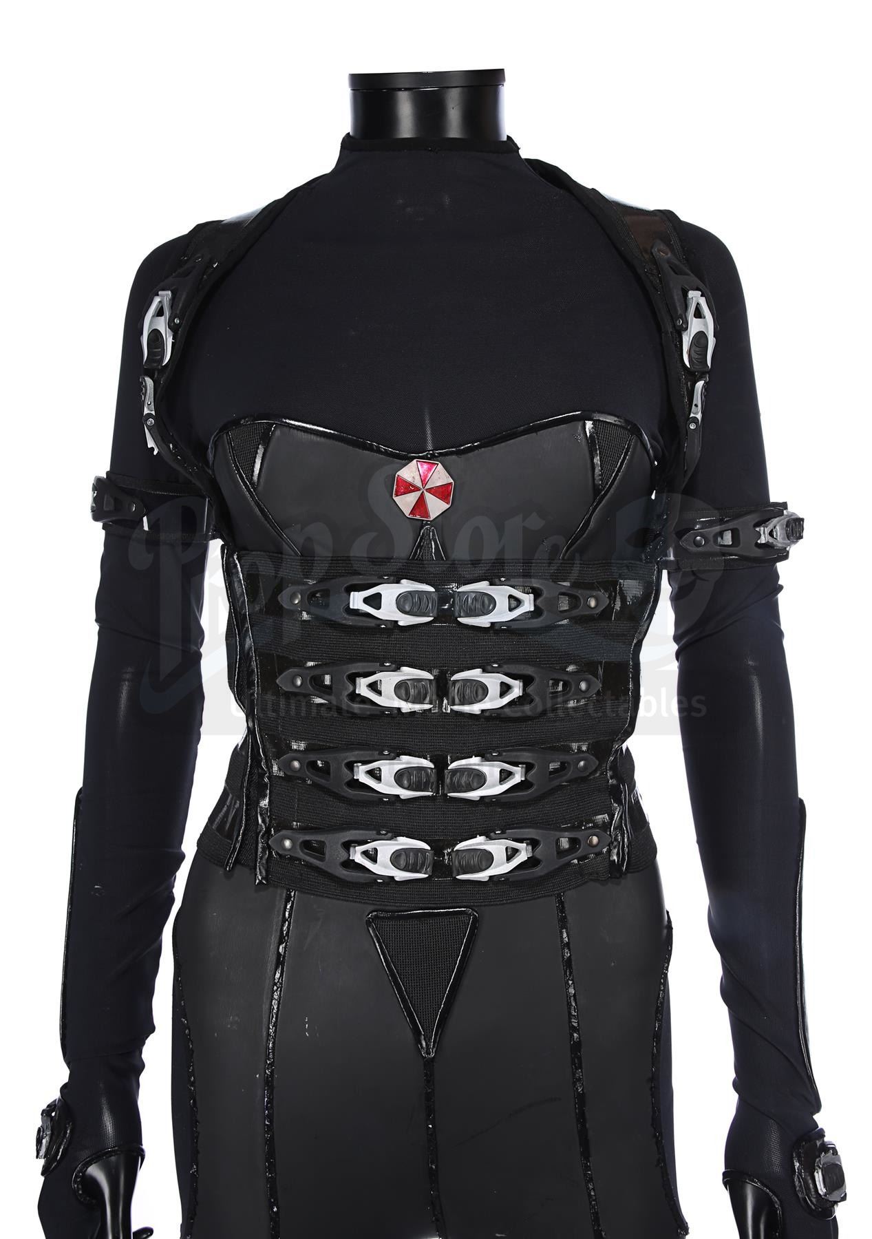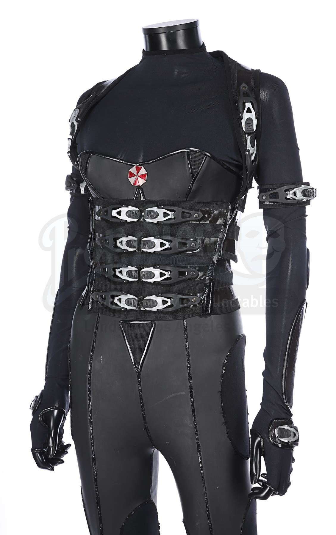 Alice's (Milla Jovovich) Umbrella uniform from Paul W. S. Anderson's action-horror sequel Resident Evil: Retribution. When Alice woke up in an underground facility run by the villainous Umbrella Corporation, she was presented with a uniform to wear. She wore it for the rest of the film as she and her allies battled within the facility's many combat simulation environments.