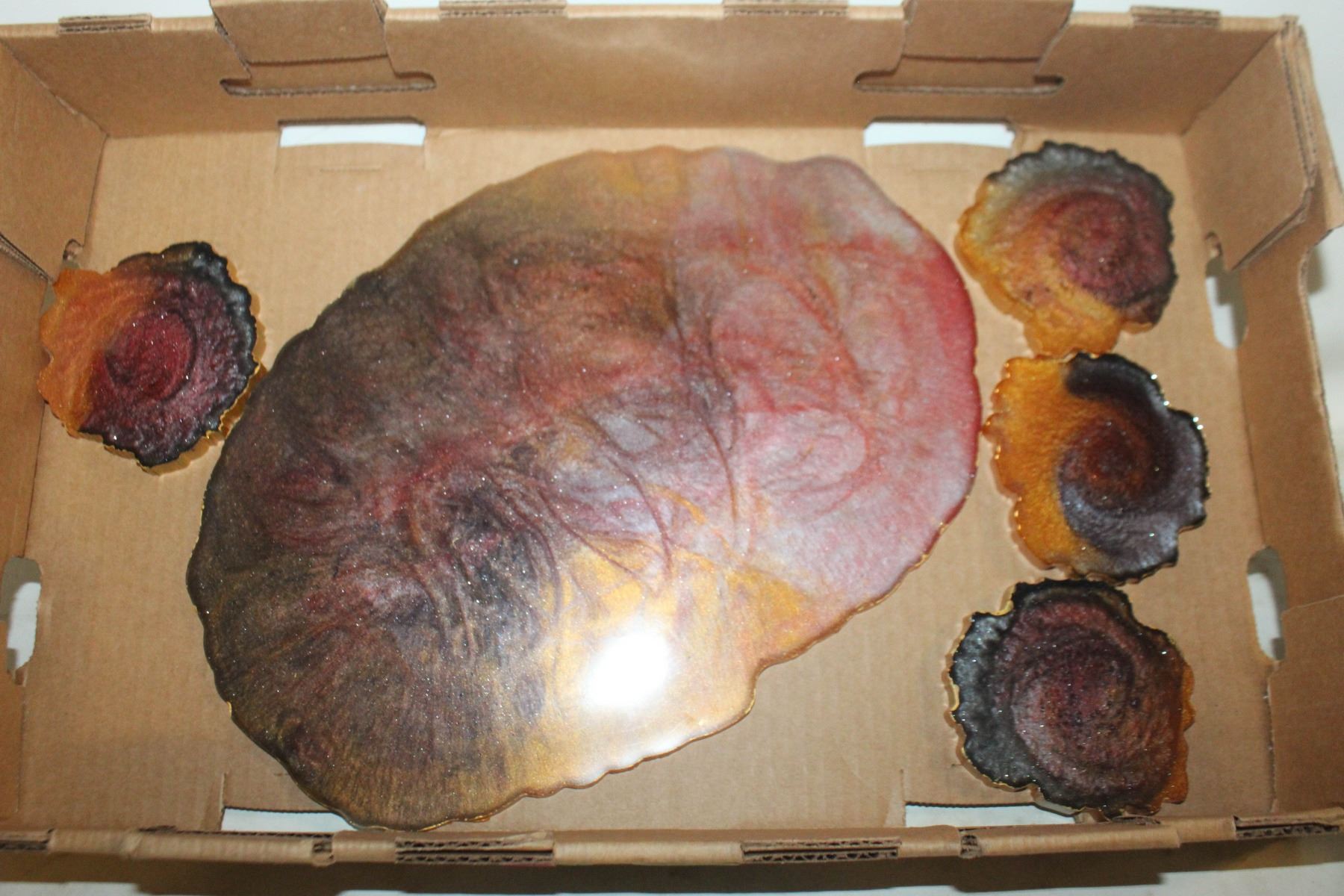 RESIN CENTERPIECE AND COASTERS