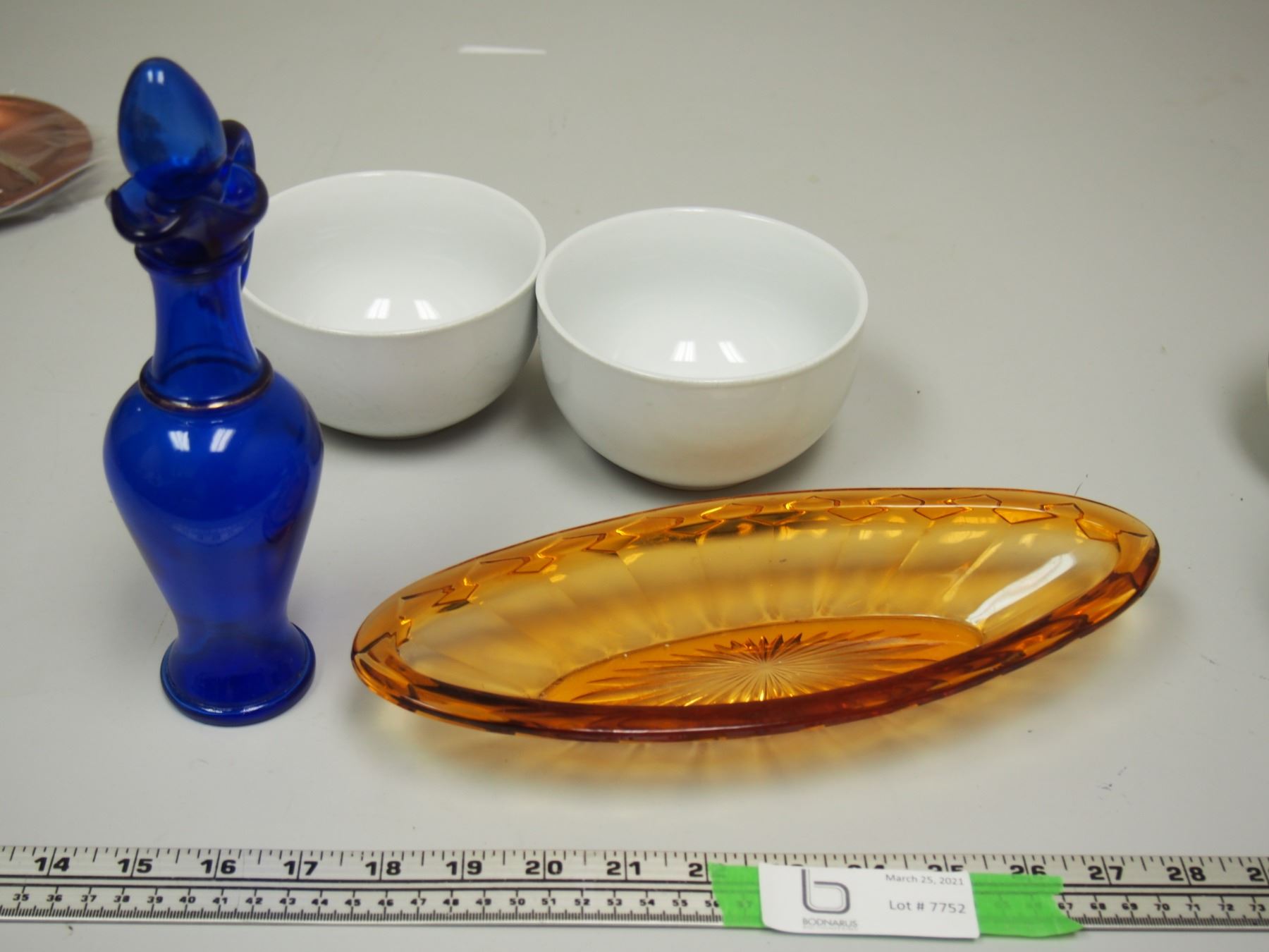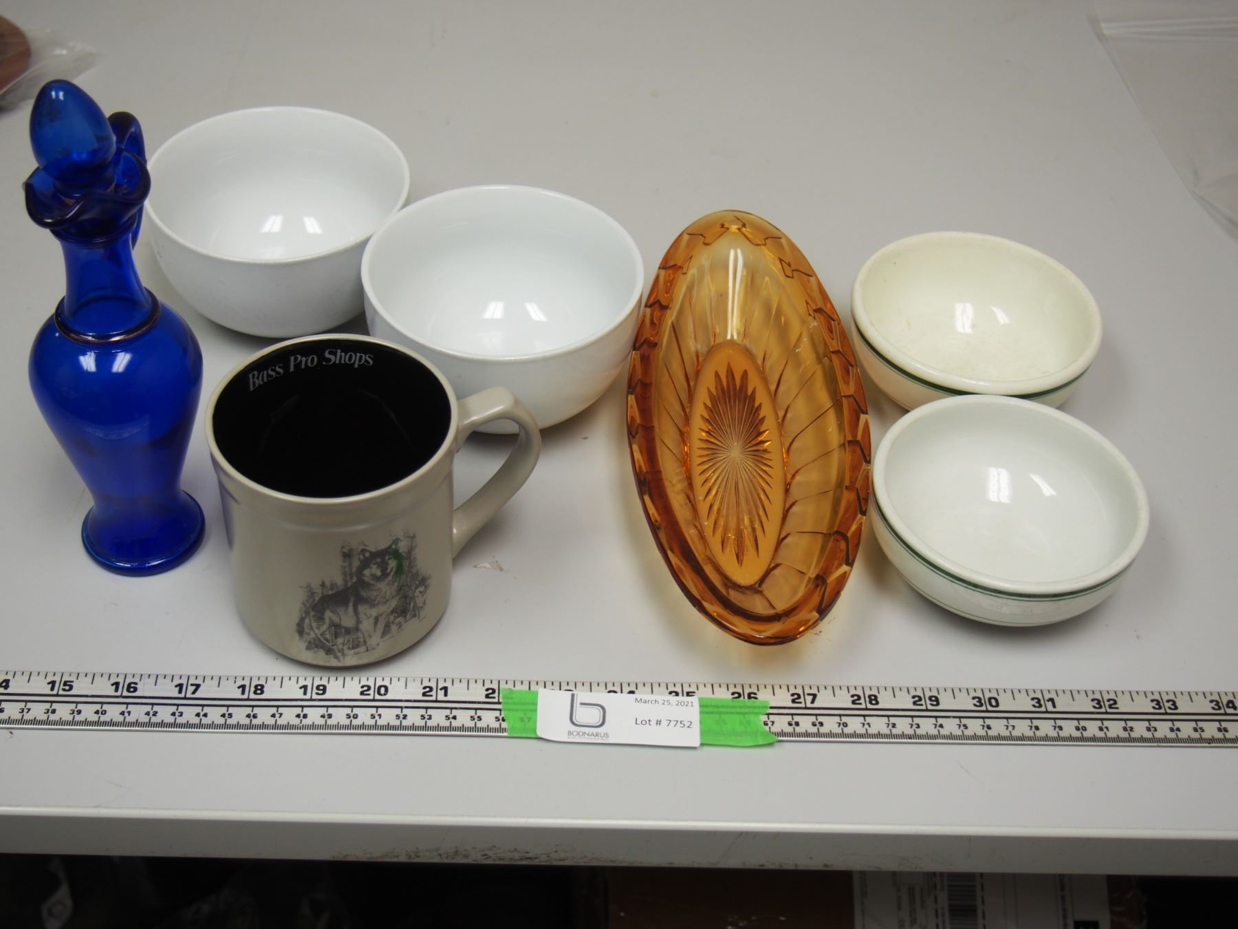 RESTAURANT WARE BOWL, COLORED GLASS, & BASS PRO COFFEE CUP