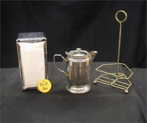 RESTAURANTWARE TABLETOP PCS. INCLUDES (1) LEGION INDIV. COFFEE SERVER, (1) CHROME NAPKIN HOLDER DBL. SIDED, (1) CONDIMENT RACK, 3 PC