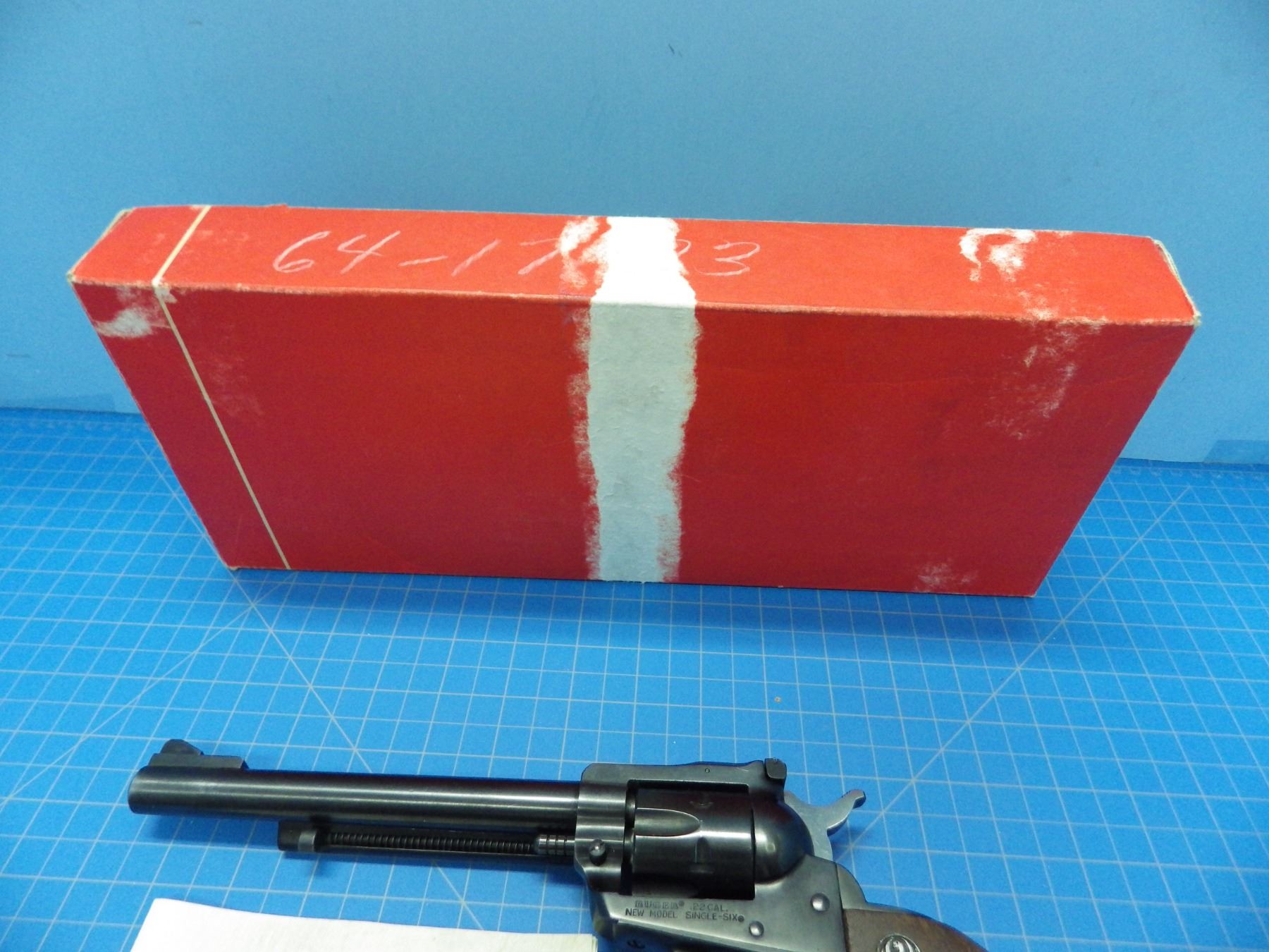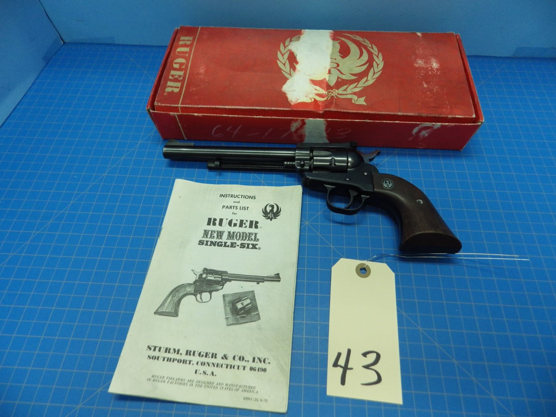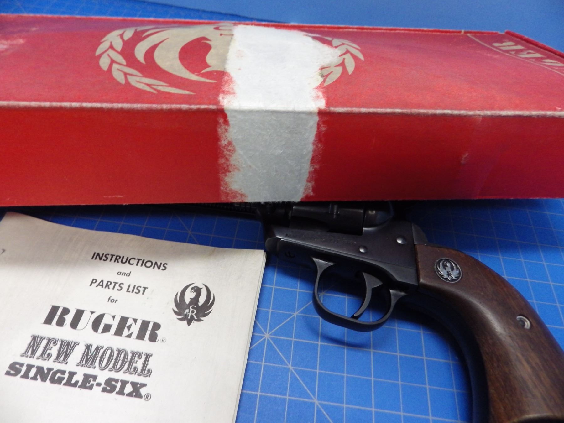 RESTRICTED ** RUGER NEW MODEL SUPER " SINGLE SIX " SINGLE ACTION .22 CALIBER REVOLVER, 165mm BARREL LENGTH, with original box -- box in rough condition, Serial # 6417173 … DUE TO CANADIAN REGULATIONS THIS ITEM CAN ONLY BE TRANSFERRED TO ANOTHER BUSINESS, CANADIANS WHO HAVE OLYMPIC / MUSEUM CLASSIFICATION, OR SOMEONE WHO IS EXPORTING IT… OR IF YOU WANT IT TO BE DEACTIVATED --- THERE IS A $200.00 FEE IF YOU WISH TO HAVE THE ITEM DEACTIVATED. IT CAN NOT BE TRANSFERRED TO A BUYER WITH 12-6 or 12-5 CLASSIFICATION. THE OTHER OPTION IS TO HAVE THE ITEM STRIPPED DOWN FOR PARTS THAT ARE ALLOWED TO BE SOLD AND THE PARTS WILL BE SHIPPED TO THE BUYER … THE FRAME AND ANY PARTS WITH A SERIAL NUMBER STAMPED ON THEM OR DEEMED UNSALEABLE WILL NOT BE INCLUDED AND WILL BE TURNED OVER TO THE CANADIAN FIREARMS PROGRAM FOR DESTRUCTION… THE FEE TO STRIP AN ITEM DOWN FOR PARTS IS $150.00. DO NOT EXPECT ITEMS THAT ARE TO BE DEACTIVATED OR STRIPPED FOR PARTS TO ARRIVE UNTIL SOMETIME IN JUNE / JULY 2025 TO ALLOW FOR THE PROCESS TO HAPPEN.