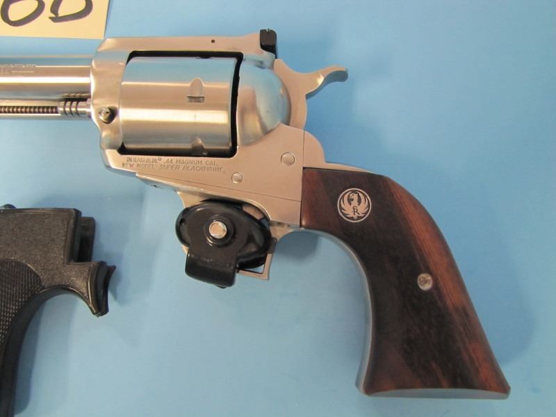 RESTRICTED: Ruger New Model Super Blackhawk, Stainless Steel, 44 mag, single action revolver, 6 shot, 191mm barrel, original and Pachmayr grips