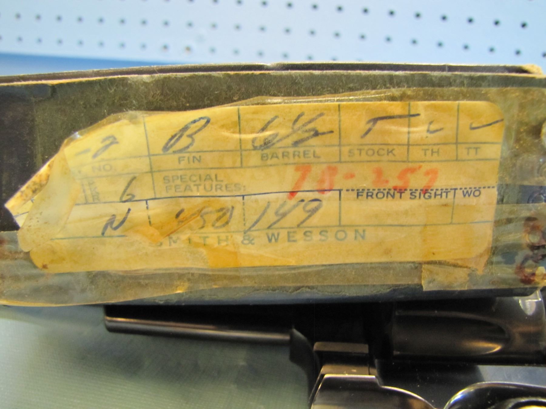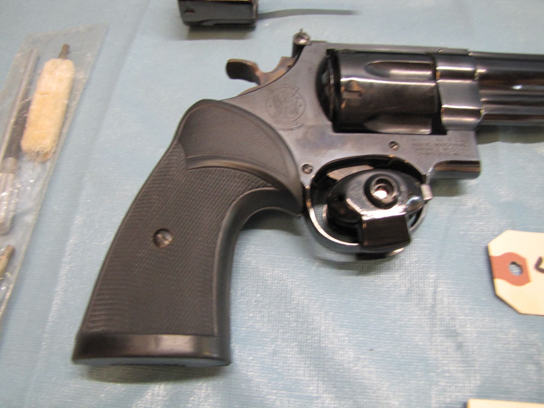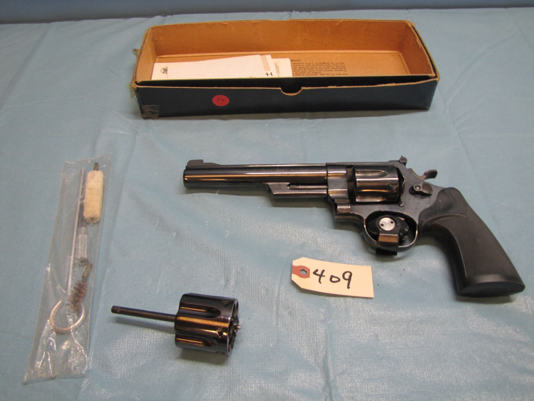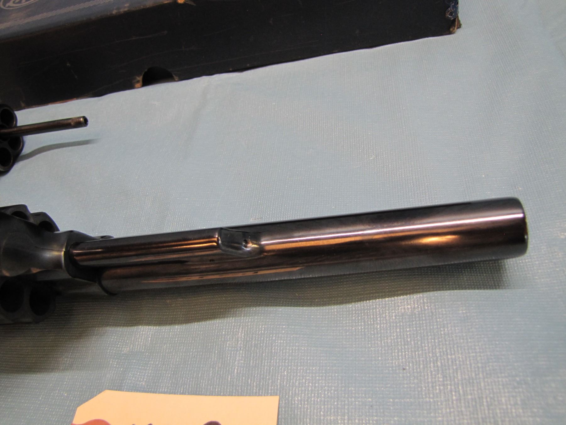 RESTRICTED: Smith & Wesson model 25 - 2 ; 45 acp in original box, with extra cylinder in 45 LC , functions as designed, 6 1/2" barrel, excellent bore, restricted ; serial number N 450142 ; - the model "25" was previously known as the "45 Hand Ejector Model Of 1955 Target"; it was re-designated as the model "25" in 1957 when Smith & Wesson adopted the policy of model numbers in place of names.