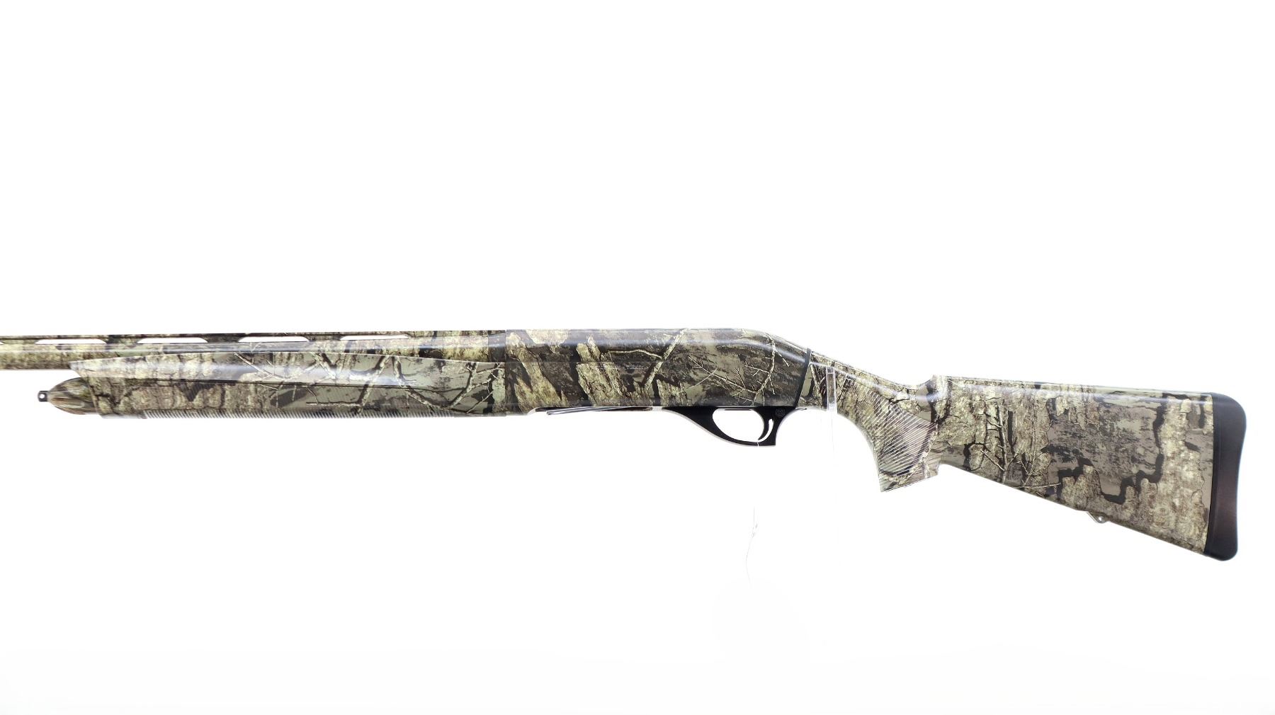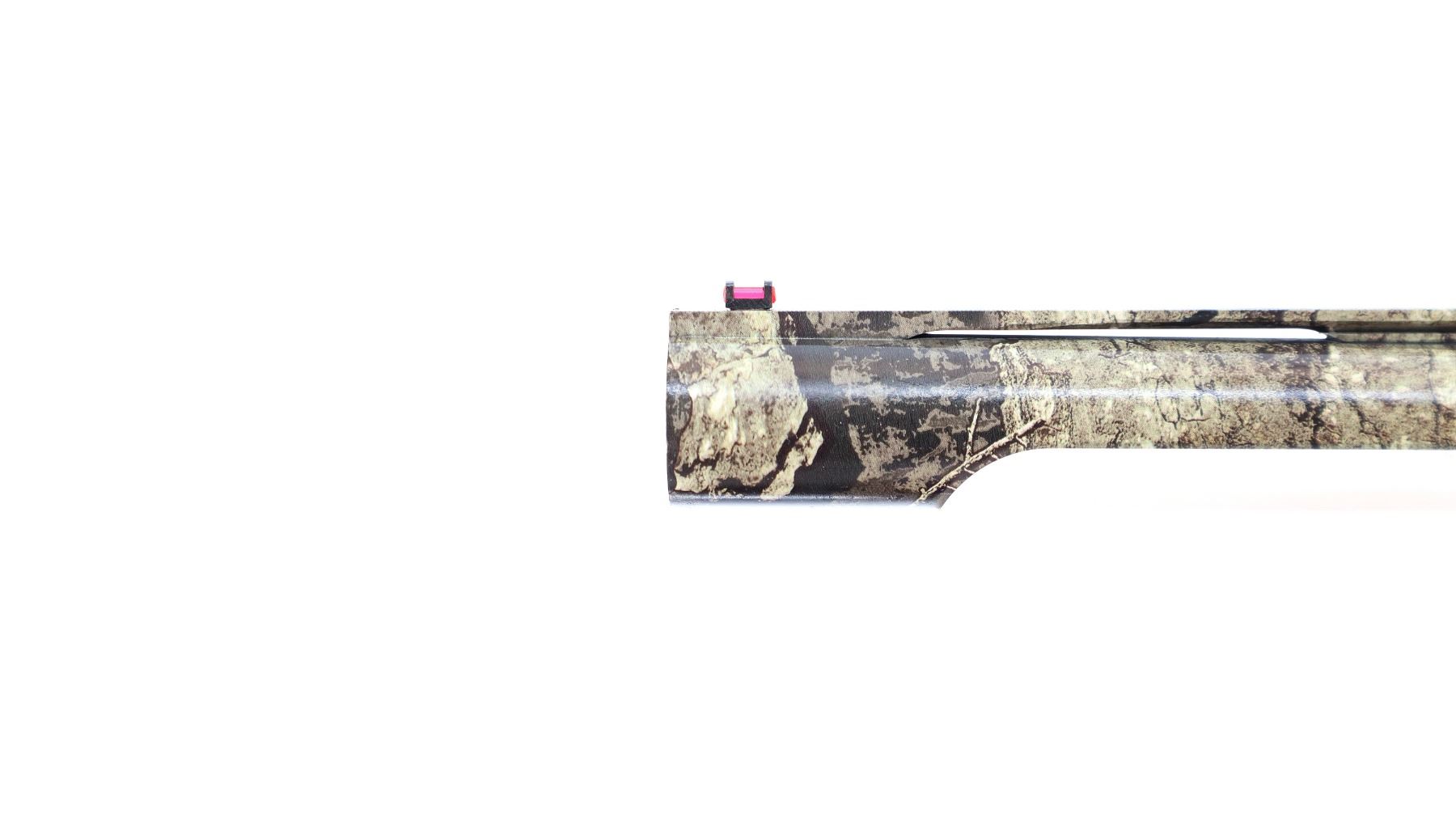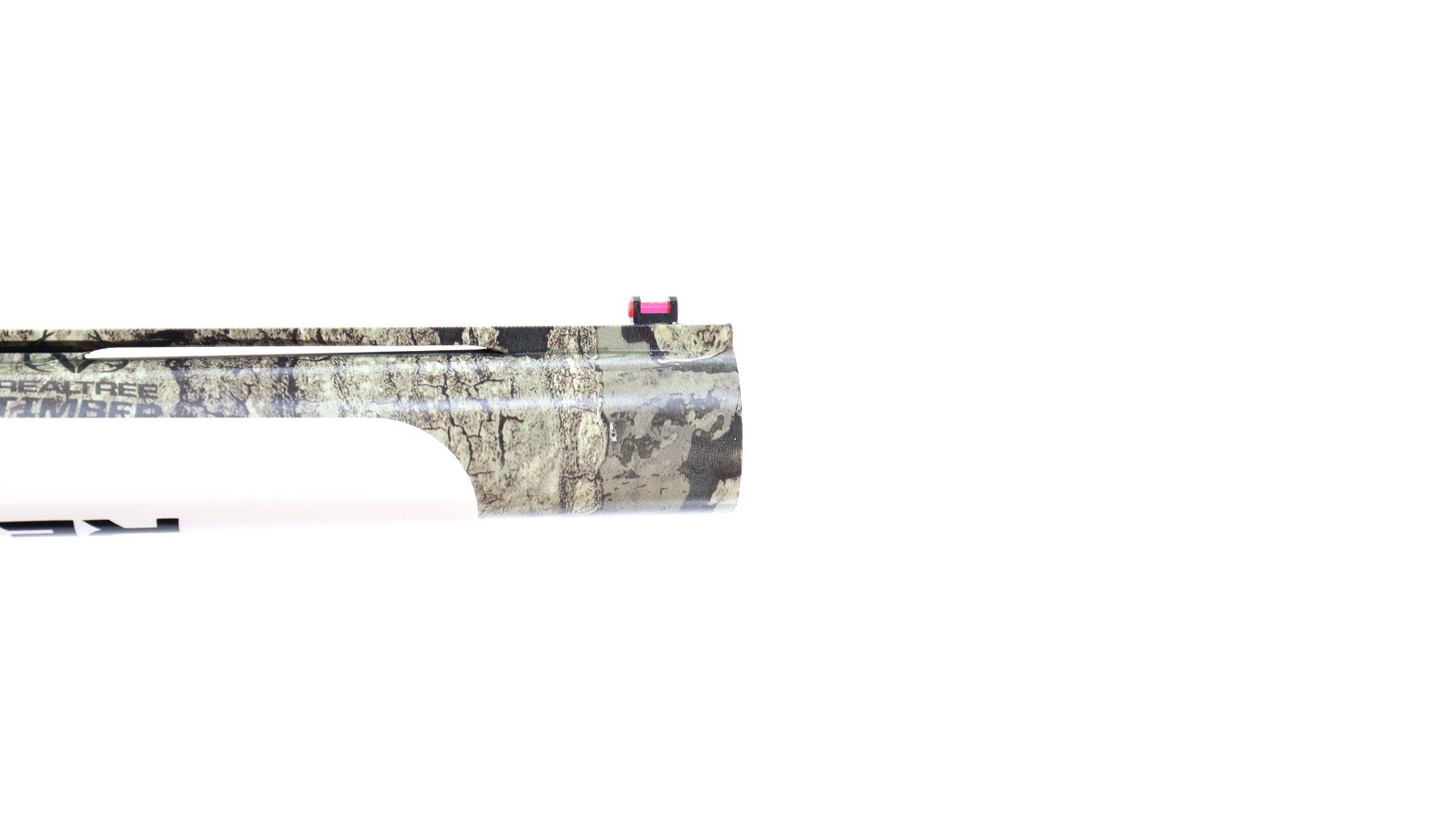 Main Description: Red fiber optic front bead, Real Tree Timber Camo overall, vent rib, alloy receiver, extended cocking handle and grooved bolt release. Two piece synthetic stocks, grooved forearm and pistol grip panels, black rubber recoil pad, grip cap, swivel studs, retains factory sticker and hang tags. Accessories include: four stock spacers, sling swivels, spare Cylinder, IC, IM and Full Chokes with wrench.