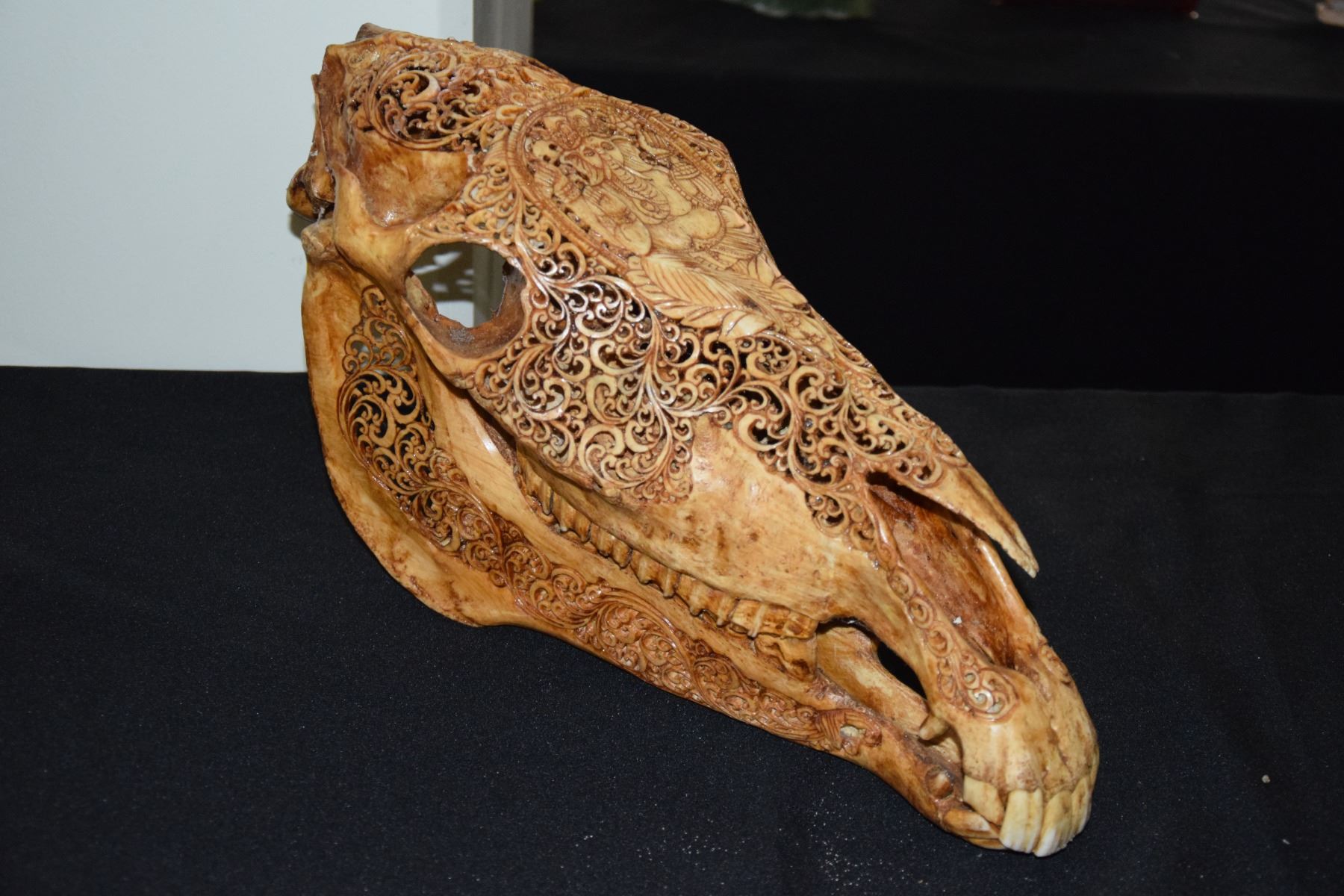 RETICULATED BONE ART SCULPTURE, GANESHA;