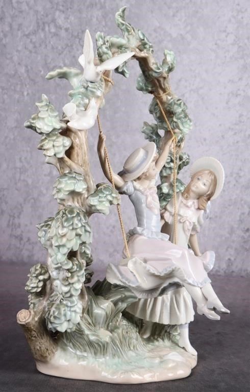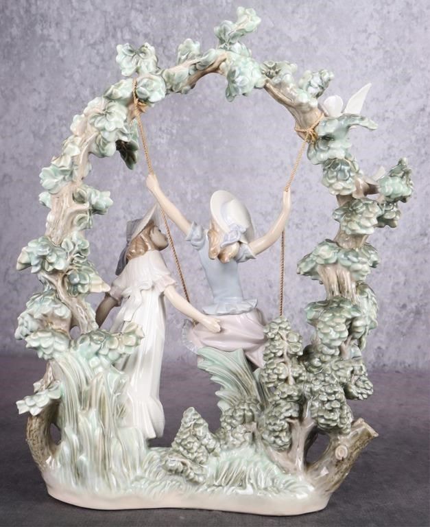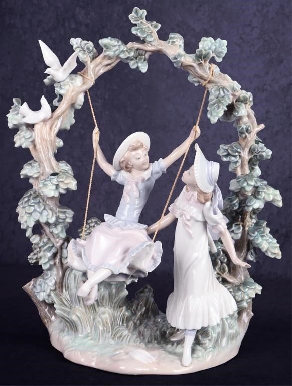 Retired Lladro & quot;Girls in the Swing& quot; #1366 porcelain figurine.