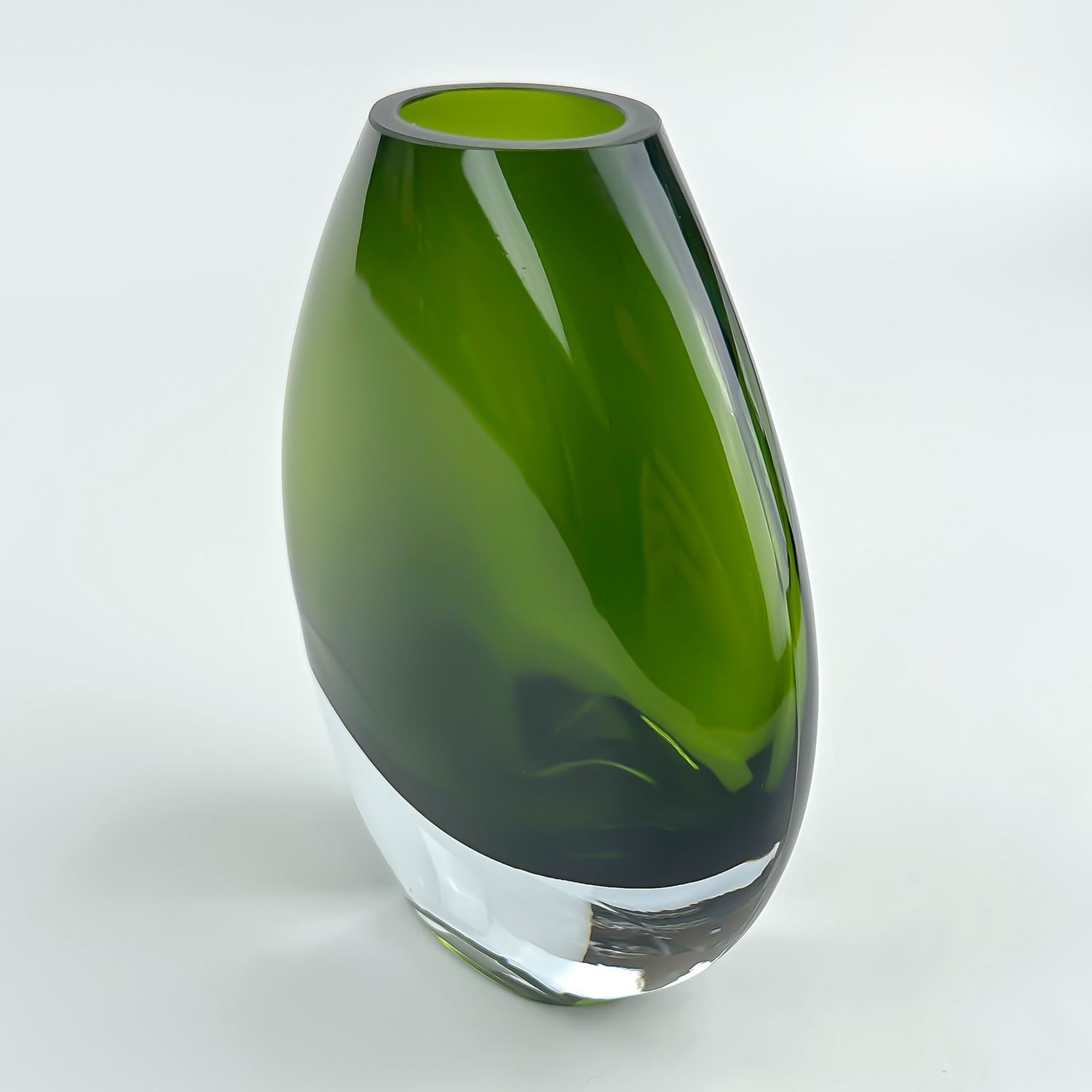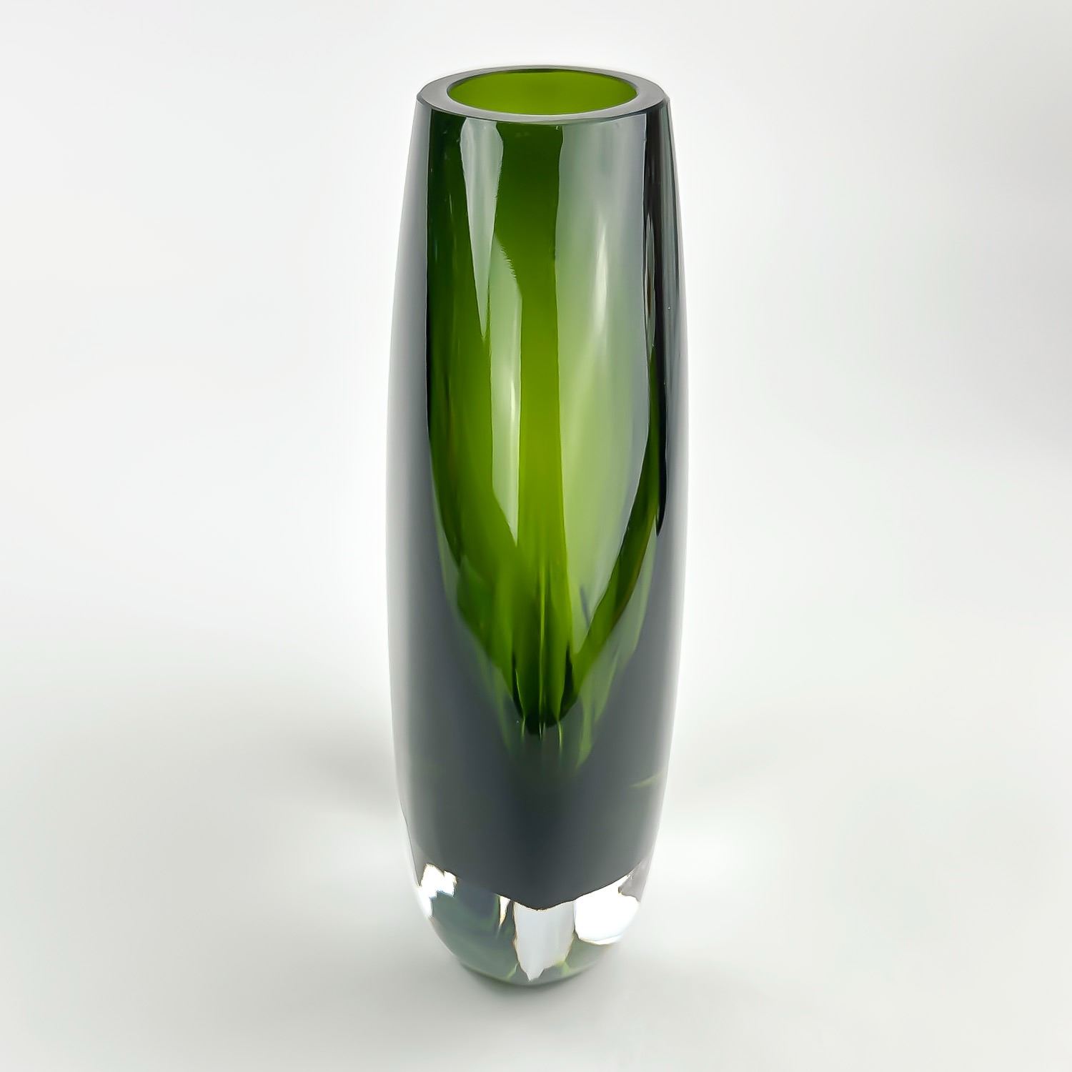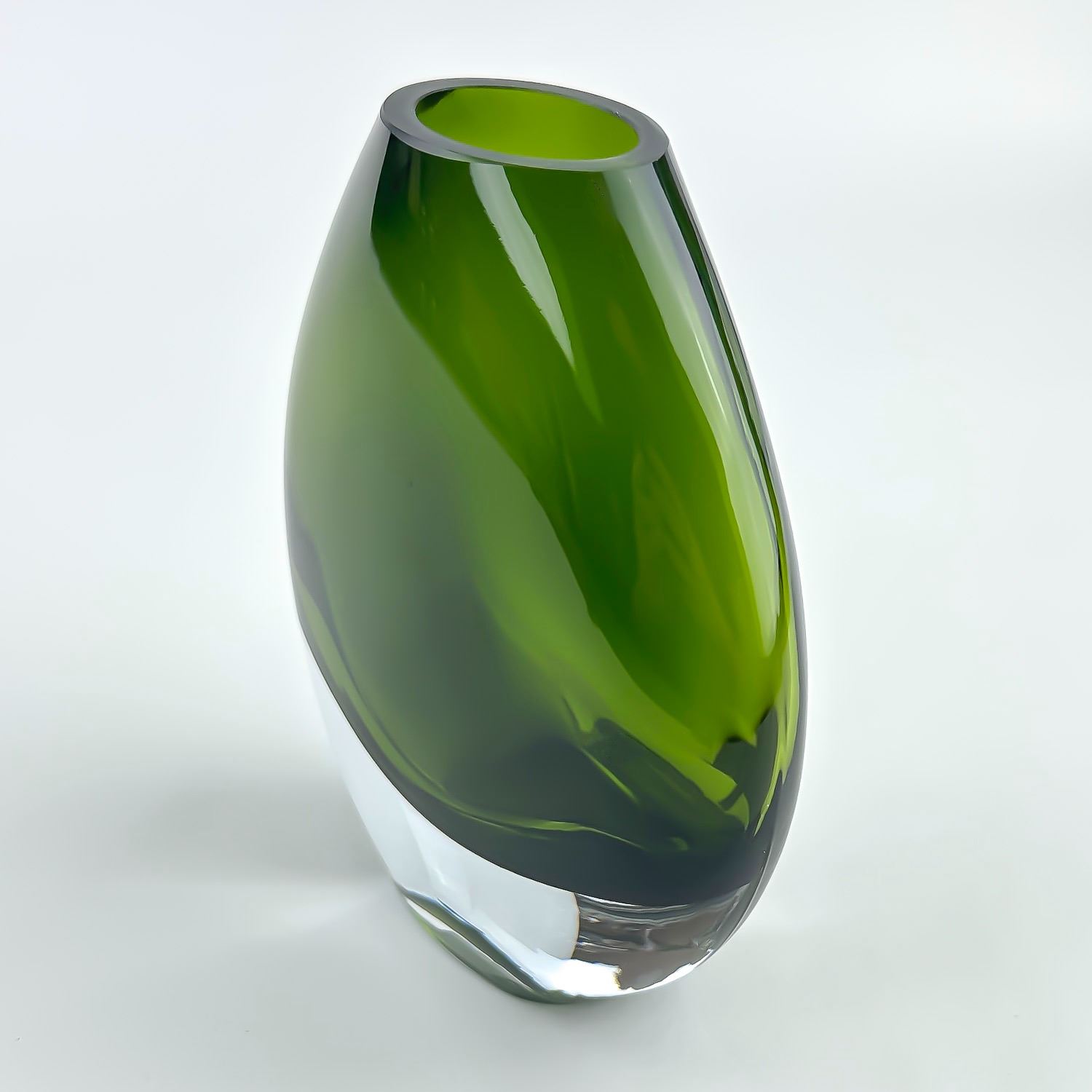 #8550 - THIS IS A RETIRED PARTYLITE RAINFORST RENEWAL ART GLASS FLOWER BUD VASE OR OIL DIFFUSER. NO CRACKS, CHIPS OR REPAIRS. MEASURES 6” (15 CM) TALL BY 5.25” (13.5 CM) WIDE AND 2”(5 CM) DEEP.