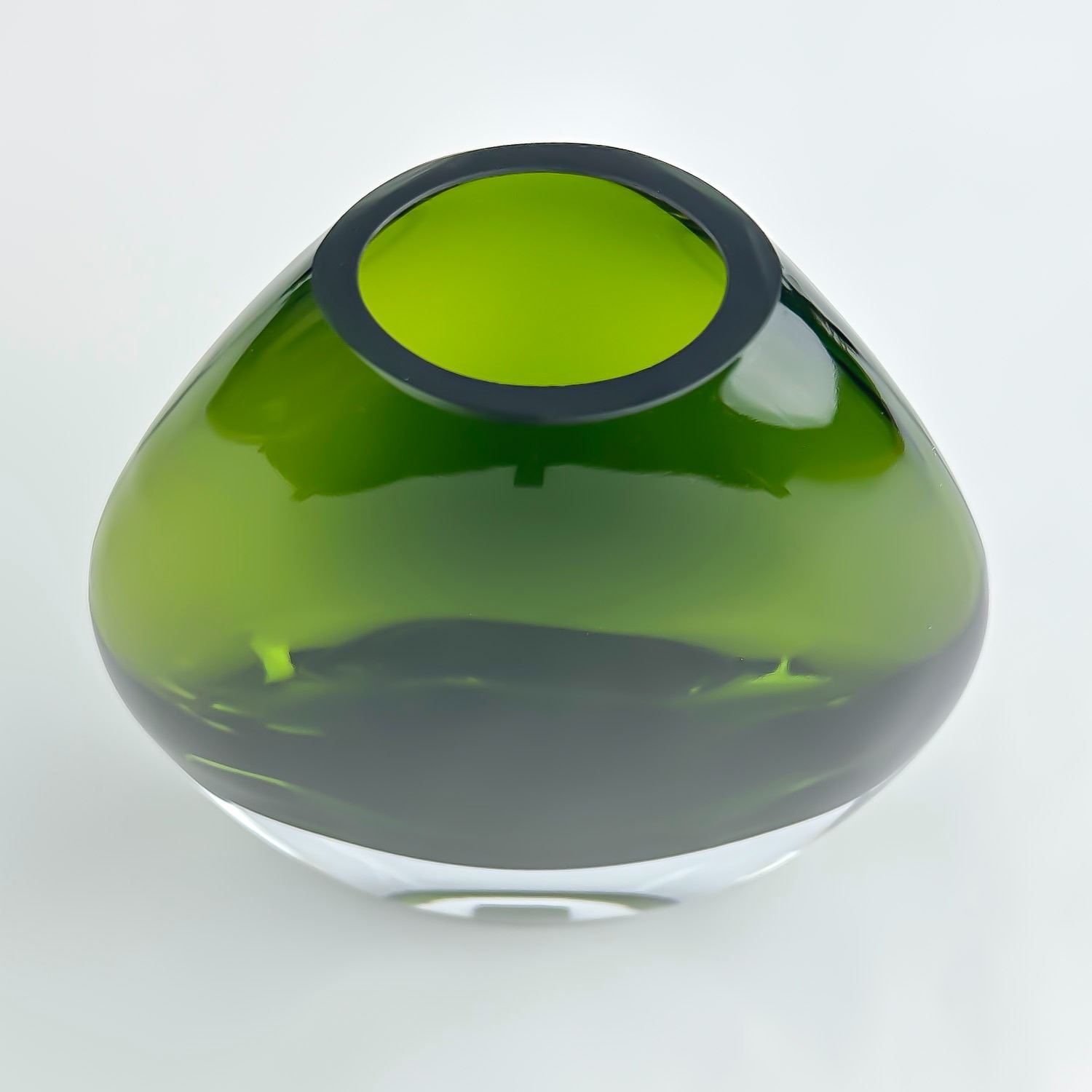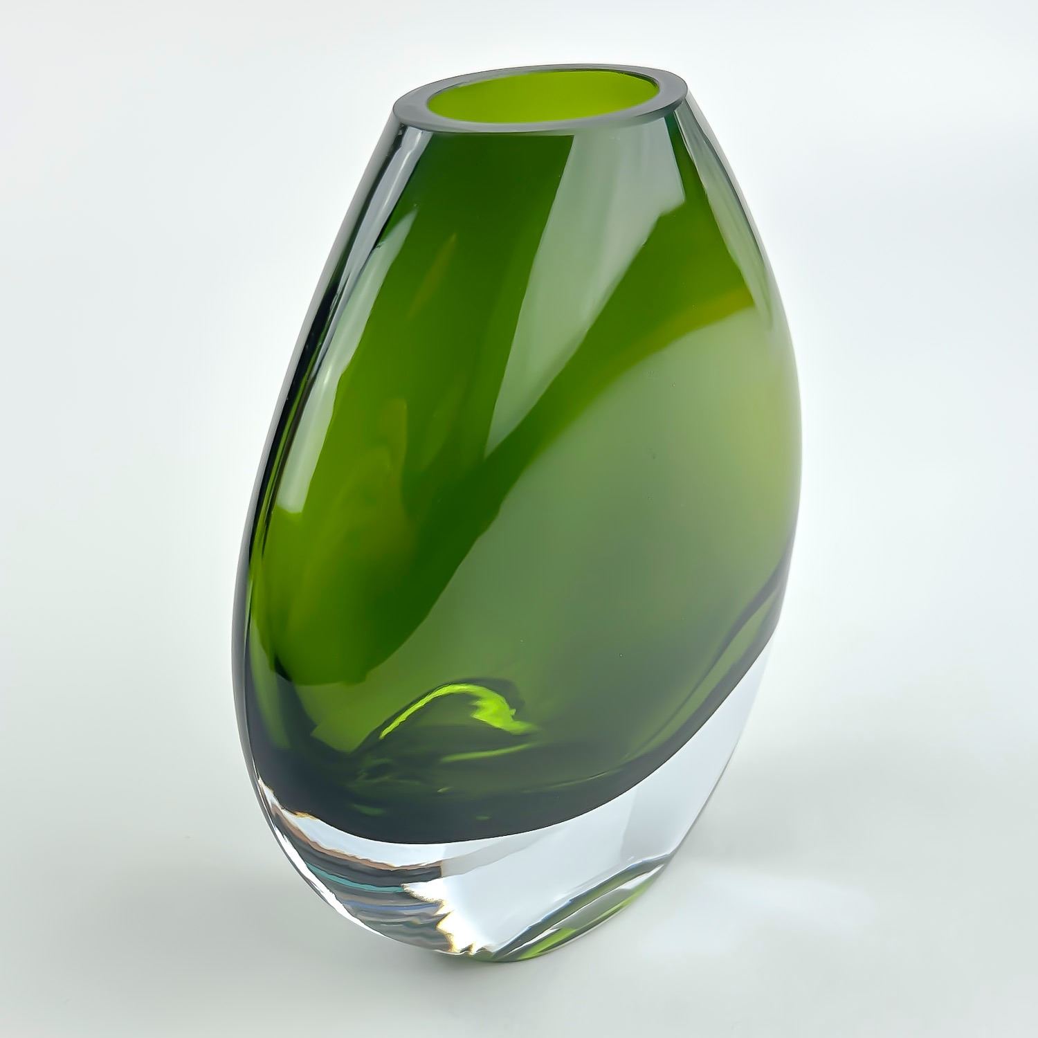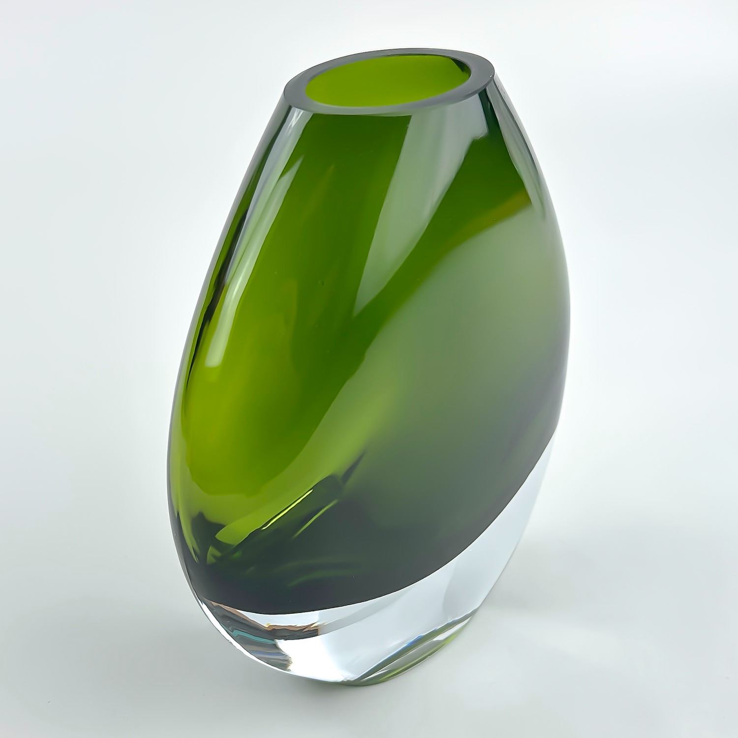 #8550 - THIS IS A RETIRED PARTYLITE RAINFORST RENEWAL ART GLASS FLOWER BUD VASE OR OIL DIFFUSER. NO CRACKS, CHIPS OR REPAIRS. MEASURES 6” (15 CM) TALL BY 5.25” (13.5 CM) WIDE AND 2”(5 CM) DEEP.