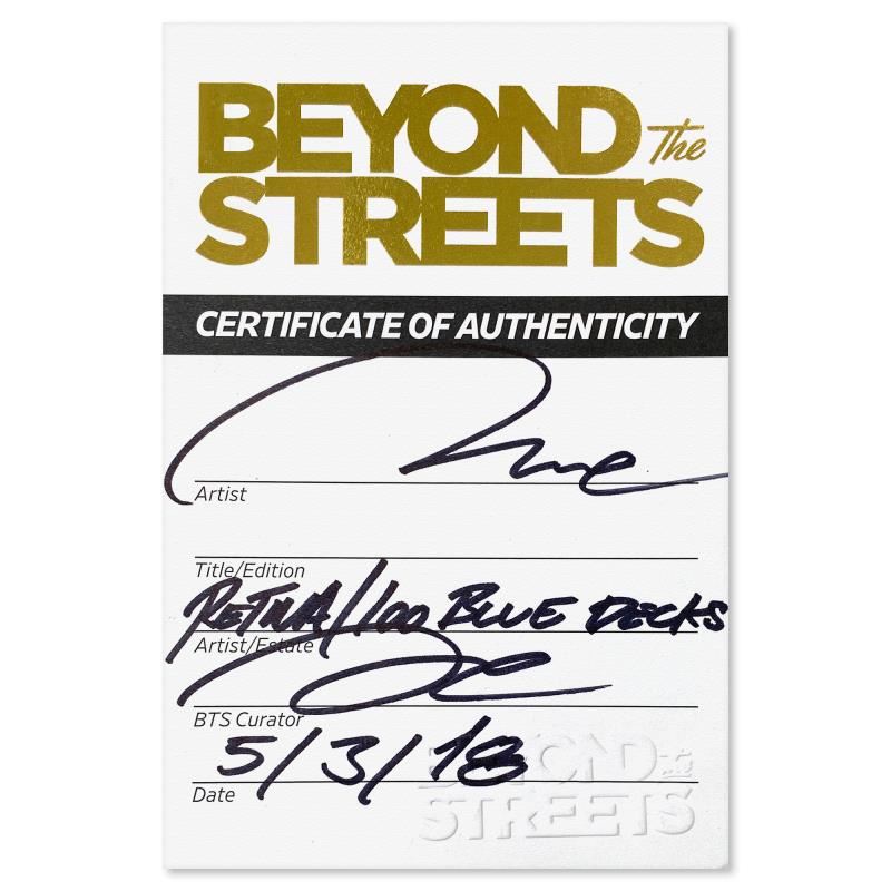 "RETNA Beyond The Streets Skateboard" is a limited edition screen printed skateboard deck by RETNA. This piece comes framed. Includes Certificate of Authenticity from "Beyond The Streets" that is hand signed by the artist. Measures approx. 38" x 14.5" (frame), 32" x 8.5" (image).