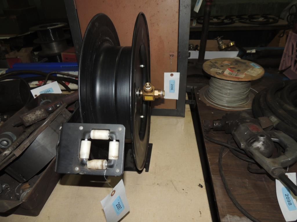 RETRACTABLE CELING MOUNT AIR HOSE HOLDER WHEEL, AIR HOSE STORAGE. GARAGE AIR HOSE, SHOP AIR HOSE AS SHOWN SEE PHOTO FOR MORE DETAILS