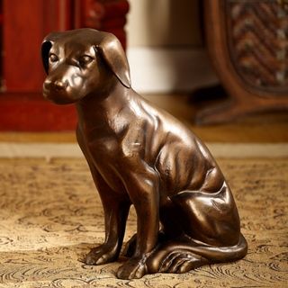 RETRIEVER DOG SCULPTURE - 13"H 13"W 5.5"D - BRONZE FINISH - ALUMINUM