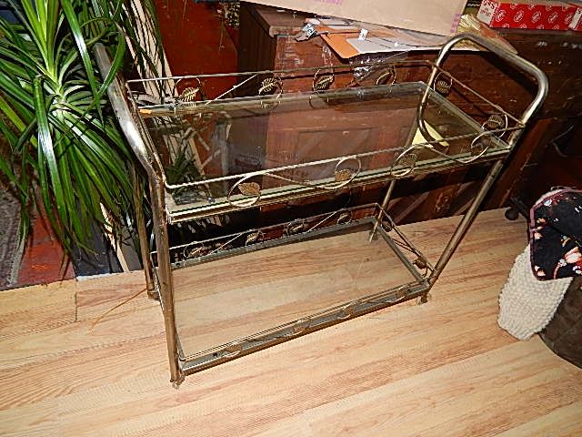 RETRO BRASS SERVING CART WITH GLASS SHELVES