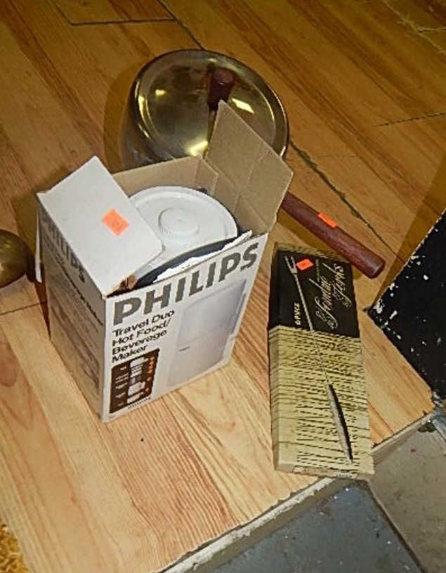 RETRO FONDUE SET, COFFEE MAKER AND SERVING FORKS