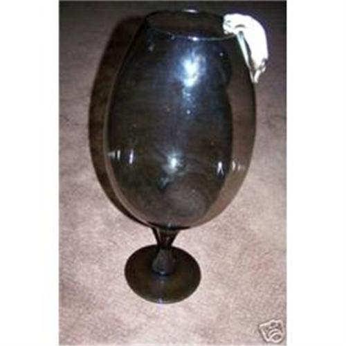 Vintage Large Goblet Shaped Smoked Gray Glass Vase with small kitten on edge of vase looking in. This Style is from the 1950's-1960's. Kitten has blue eyes & has a small chip on inside of ear & tail has a chip with a missing piece at the end of its tail. Vase is in very good shape. No chips or cracks. Vase is Gray Glass measuring including pedestal is 19 1/2" tall x 28 1/2" (circumfrence at widest part). Pedestal is 6" tall. Vase is 13 1/2" tall. There are natural glass marks/line from manufacturing. I cannot locate the name of the manufacturer on this vase. Great Looking Piece to display! This piece is a minimum of 45+ Years old!