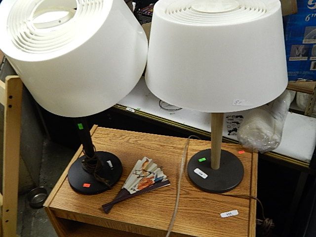 RETRO LAMPS - WHITE PLASTIC SHADES ON 2 - AND 1 NO SHADE = 3 TOTAL