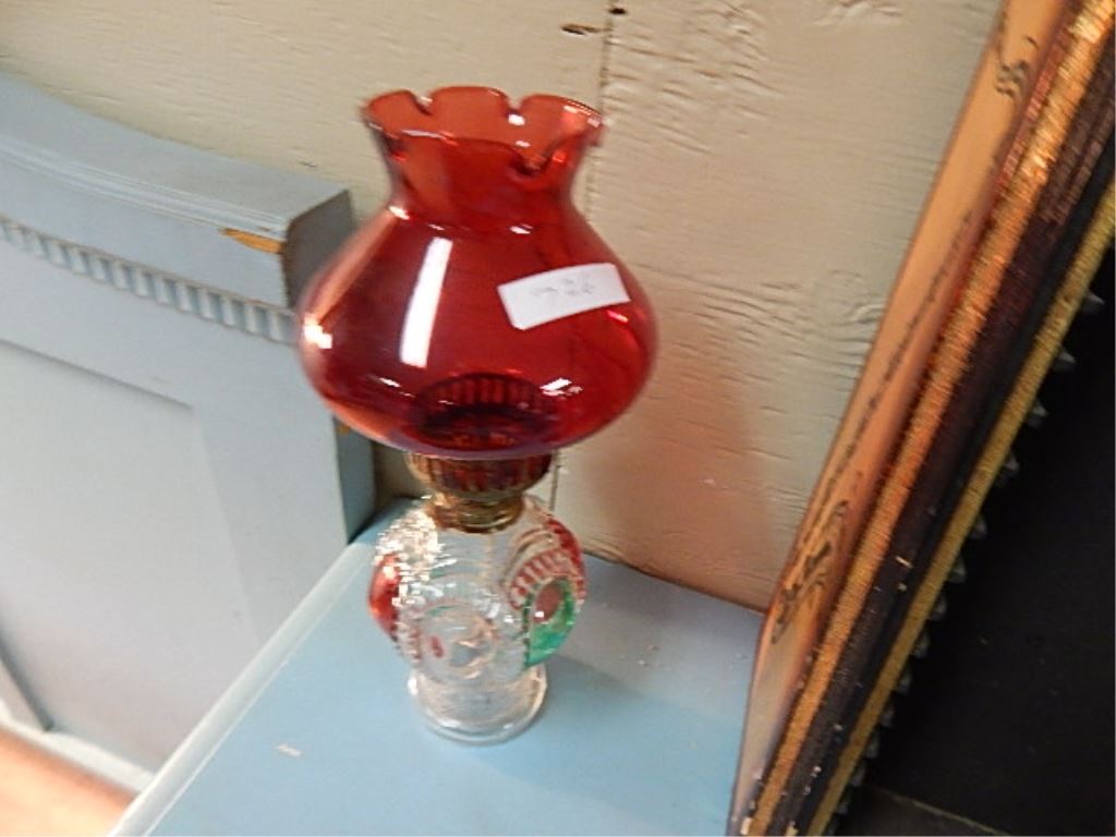 RETRO STYLE OIL LAMP - CRANBERRY GLASS SHADE