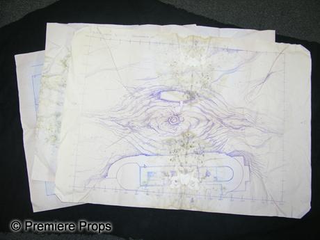 Sarlac Pit Blueprints. Here are 3 sheets of original blueprints used on the set during the famous Sarlac Pit scene. They are aged and have various degrees of water damage, but are suitable for restoration. From a crewmember's private collection. (30" x 20")