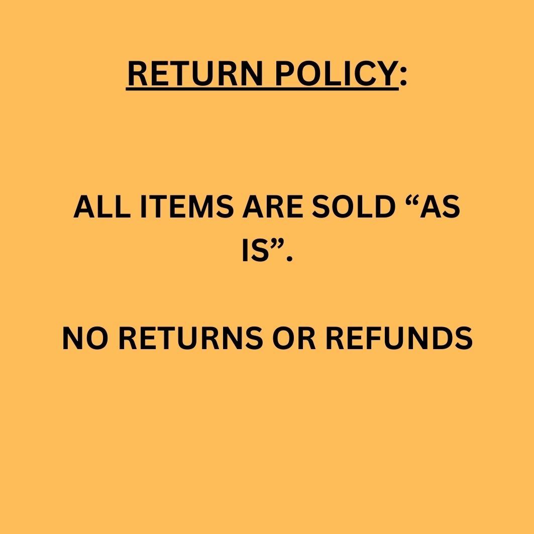 NO RETURNS OR REFUNDS. ALL ITEMS ARE SOLD "AS IS WHERE IS".
