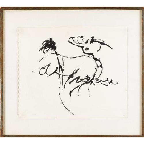 <B>REUBEN NAKIAN</B></I> (American 1897-1986)<BR><I>Untitled Composition</B></I><BR>Ink on paper<BR>14 x 16-3/4 inches, sheet (35.6 x 42.5 cm)<BR>Inscribed lower right in pencil: <I>EE</B></I><BR><BR> <B>Condition Report:</B> normal wear with age, one stain to paper in right margin (approximately .75 inches)<BR><BR><b>Shipping:</b> Requires 3rd Party Shipping (<a target="_blank" href="http://www.heritageauctions.com/common/shipping.php">view shipping information</a>)