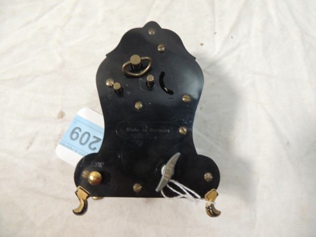 SMALL MUSICAL ALARM CLOCK PLAYS THE SONG FROM MOULIN ROUGE SWISS MUSICAL MOVEMENT. PERFECT CONDITION. STANDS 5" TALL.