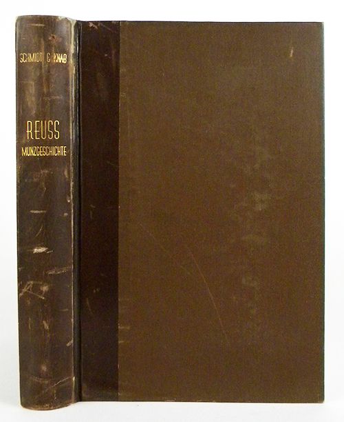 Schmidt, Berthold, and Carl Knab. REUSSISCHE MÜNZGESCHICHTE. Dresden, 1907. 8vo, later brown baby calf, gilt. iv, (4), 283, (1) pages; 17 fine plates of coins and medals. Spine a bit worn, but binding sound. Very good or better. Very scarce. An important work on the coins and medals of Reuss, from medieval to modern times. Clain-Stefanelli 9522.