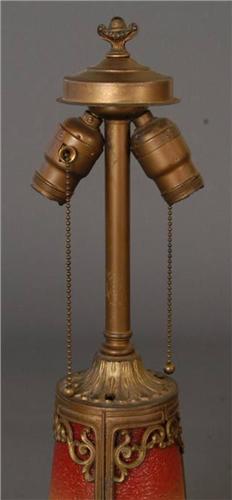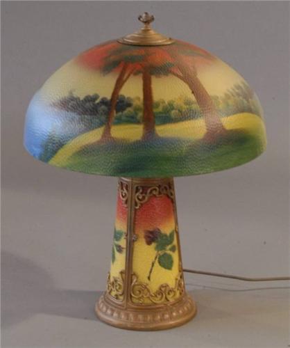 with "light-up" base signed Handel on base and shade, early 20th century- PLEASE NOTE: despite a convincing signature we do not believe this to be the work of Handel and are selling as a lamp of the period only.