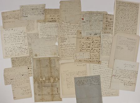 A fantastic archive of over 50 documents from the Revolutionary War era, in all formats and relative to many subjects, with some written by prominent personalities and many others not identified and worthy of research. The archive emanates from the esteemed manuscript shop Goodspeed's of Boston and unless otherwise noted, condition is very good. Contains, in very small part: WILLIAM STEPHENS (1752-1819, judge appointed by Thomas Jefferson to take a seat on United States District Court, A.L.S. 2pp. 4to., 1804, to Joseph Clay, who conducted the impeachment proceedings against John Pickering in 1804, regarding farming and banking matters; NATHANIEL PENDLETON (1756-1821, Revolutionary War military officer, aide to Nathaniel Greene in the Southern campaigns, served as a second to Alexander Hamilton in his duel with Aaron Burr), A.L.S. 1p. oblong 8vo., Placentia [?], Sept. 20, 1817, sending a check to American politician Archibald McIntyre; JEDEDIAH HUNTINGTON (1743-1818, Revolutionary War brigadier general who repulsed the raid on Danbury, and served on the courts martial of Charles Lee and Major Andre), A.L.S. 1p. 4to., New London, June 28, 1808, requesting a certificate of delivery, inlaid; NATHANIEL PEABODY (1742-1823, American Revolutionary patriot and militia general who served in the Rhode Island expedition, a delegate to the Continental Congress and a representative of New Hampshire in many conferences promoting the Revolutionary cause), A.D.S. 1p. oblong 8vo., New Hampshire, 1787, a receipt; GOUVERNEUR MORRIS (1752-1816, American revolutionary, member of the Continental Congress and Constitutional Convention, signer of the Constitution and creator of the terms dollar and cent), A.L.S. 2pp. 4to., New York, Nov. 26, 1838 regarding the financial matters of an estate; CALEB CUSHING (1800-1879, American lawyer and diplomat, opened China to American trade and arbitrated the "Alabama" claims), A.L.S. 1p. 4to., Newbury, Dec. 1833, regretting not acknowledging a letter along with two A.D.S. sight drafts dated 1770 and 1780; GEORGE M. DALLAS (1792-1864, Vice President of the United States), A.L.S. 1p. 4to., Boston, Apr. 18, 1837, regarding payment and mentioning a Mr. Clinton. Badly eroded at right edge; SAMUEL ELBERT (1740-1788, American politician from Georgia who fought in the Revolutionary War and promoted to Colonel in the Continental Army), the bottom right corner (only) of a partly-printed D.S., [n.p., n.d.], boldly signed, sunned; JACOB MORRIS (1755-1844, Aide to Generals Charles Lee and Sullivan in the Revolutionary War), A.L.S. 2pp. 4to., Butternuts, Nov. 6, 1793, to Philip Van Rensselaer declining an invitation; JOSEPH BLACKWELL (1754-1826, Lieutenant in the 3rd Va. Regt. during the Revolutionary War), A.L.S. 1p. 4to., New York, July 21, 1792, an account of a soldier, long overdue, addressed to noted jurist Smith Thompson; JACOB READ (1752-1816, American patriot serving as a major in the South Carolina volunteers and spent four year as a British Prisoner at St. Augustine. Delegate to the Continental Congress and Federalist member of the Senate), legal A.D.S. 1p. 4to., Mar. 6, 1788 [?], a notice of examination, split at bottom left; WARD CHIPMAN (1754-1824, Governor of New Brunswick, Canada, a Tory in the Revolution), A.L.S. 1p. 4to., Boston, Oct. 18, 1817, thanking a gentleman for some books, ragged right margin and collector's sticker at top right; THOMPSON J. SKINNER (1752-1809, Massachusetts Senator), A.L.S. 1p. legal folio, Williams Town, Nov. 10, 1784, regarding some drafts and other minor governmental matters; WILLIAM TILGHMAN (1756-1827, American politician who, with his father, was a loyalist during the Revolution; became Justice of the Supreme Court after), manuscript D.S. 1p. legal folio, Philadelphia, June 24, 1817, a legal writ certifying the testimony of a witness; RUFUS PUTNAM (1738-1824, Officer in the French and Indian War, later a general in the Continental Army and Chief of Engineers of the Works of New York), partly-printed D.S. 1p. folio, Mar. 8, 1797, a letters patent. Loss at middle, linen backed for preservation, just good condition; BENJAMIN WALKER (1753-1818, Revolutionary War officer, aide-de-camp to both Baron von Steuben and George Washington), A.D.S. penned on the verso of a legal document about the rights of an heir, York, Mar. 12, 1788. Walker lists expenses and signs on Mar. 28, 1788. A 2" tear at bottom affects nothing. Along with the cut signatures of; RICHARD RUSH, ALBERT GALLATIN, OLIVER ELLSWORTH and a dozen signatures of Revolutionary War soldiers, to be researched, and more! Overall very good condition.