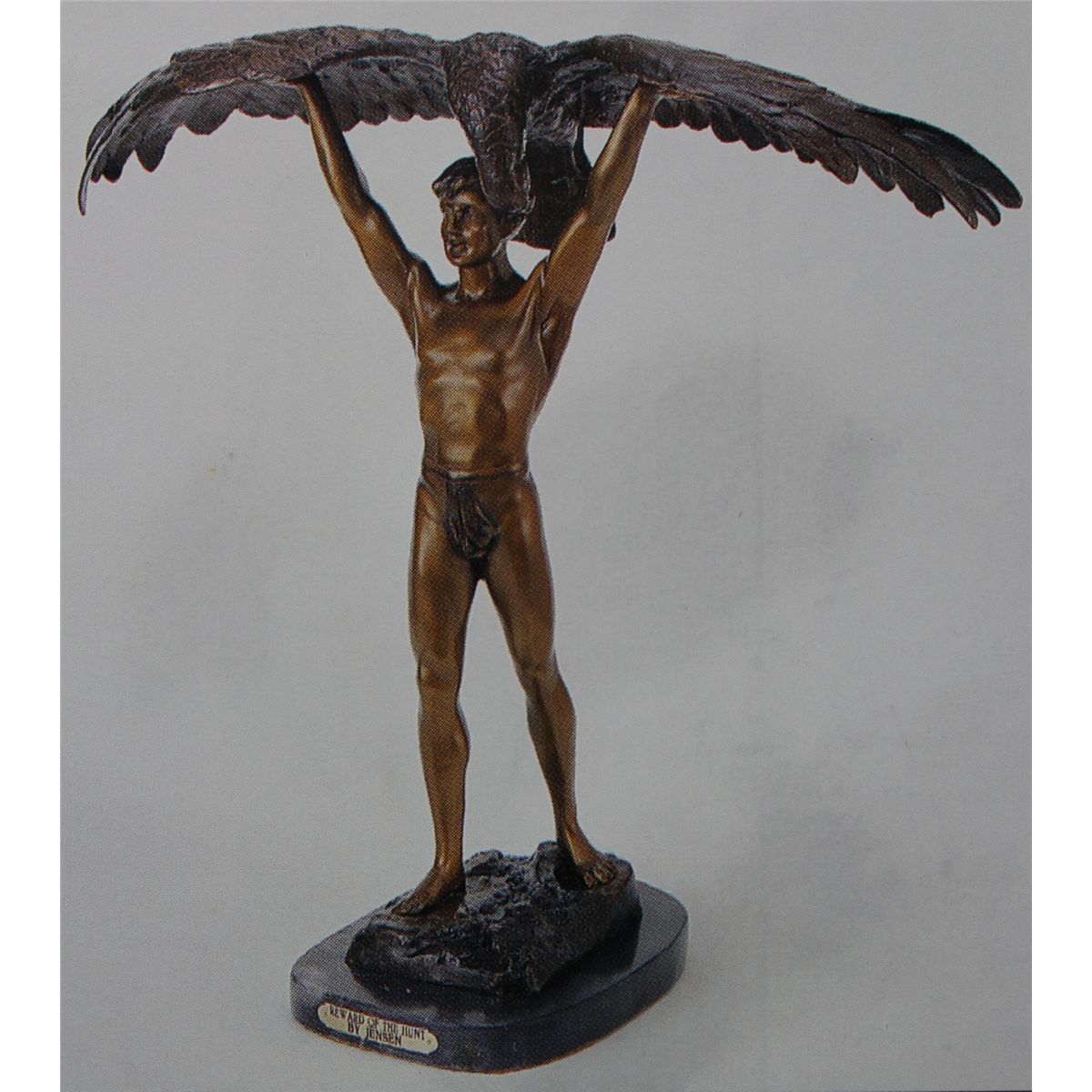 "REWARD OF THE HUNT" BRONZE SCULPTURE - AFTER JENSEN - BEAUTIFUL COLOR PATINA - MOUNTED ON A FINE ITALIAN MARBLE BASE - BEAUTIFULLY DETAILED - SIGNED - MINT CONDITION - 25"H X 9"W - LOST WAX CAST BRONZE